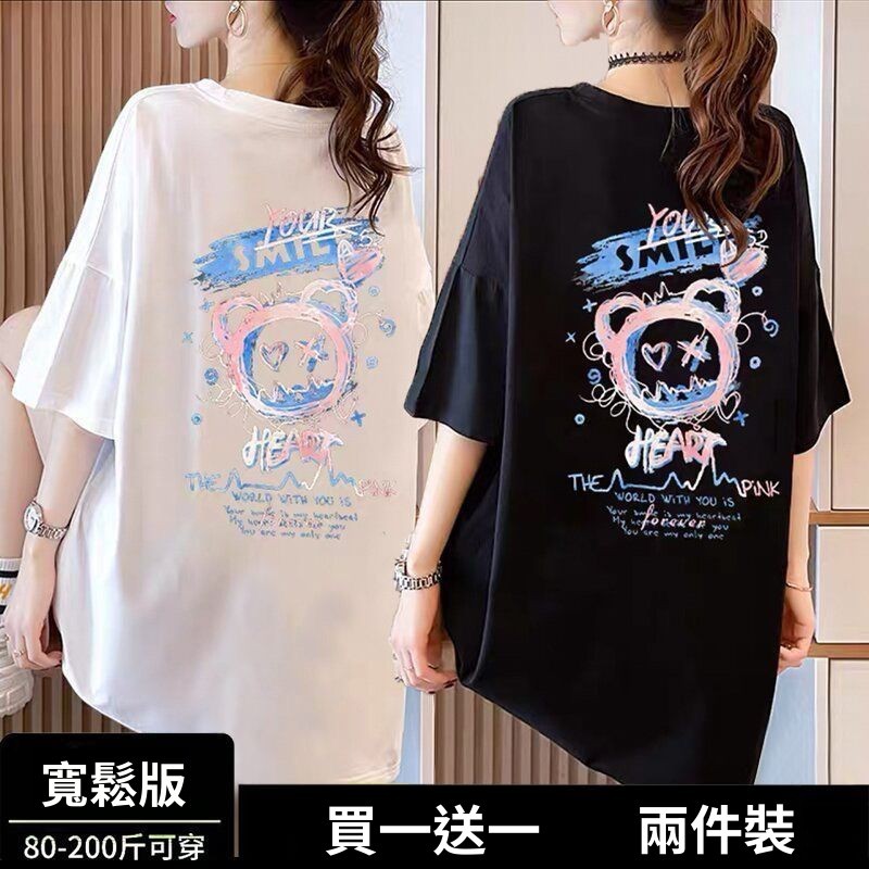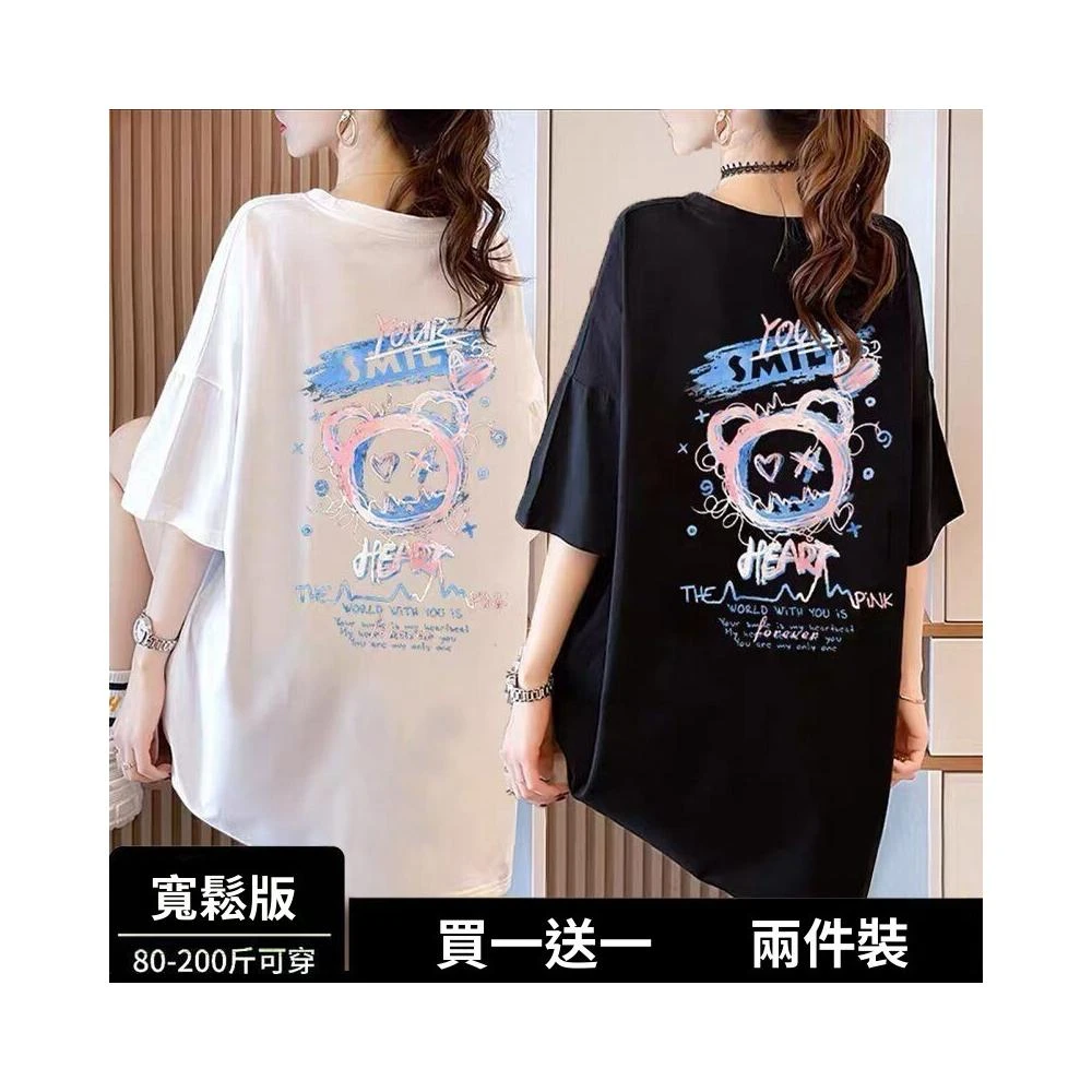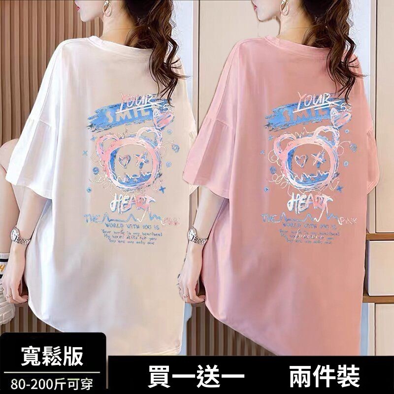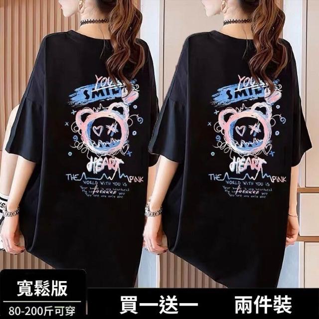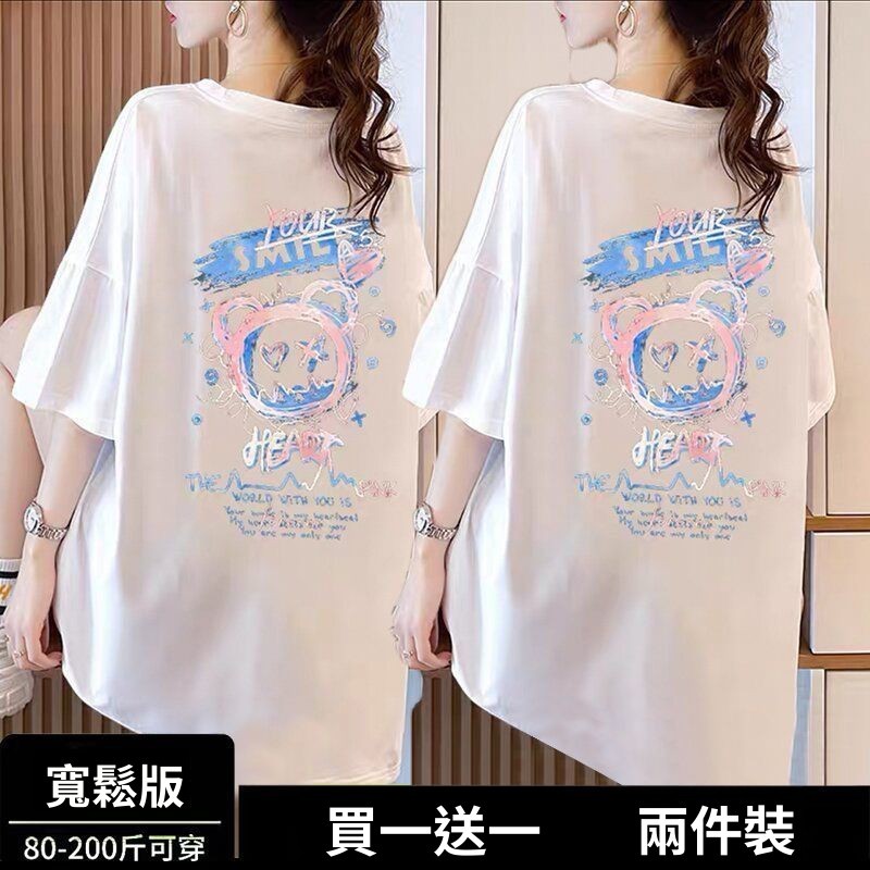 兩件胖mm時尚短袖t恤新款夏季大碼女裝寬鬆顯瘦中長款卡通上衣