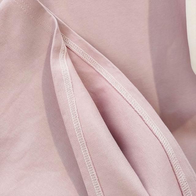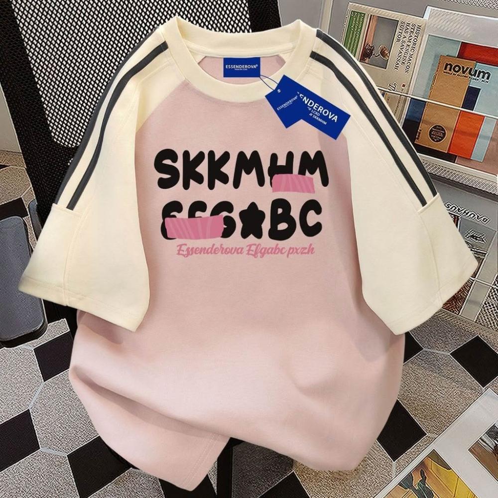 100%純棉美式小清新字母短袖t恤男女夏季休閒甜美拼接學生上衣ins