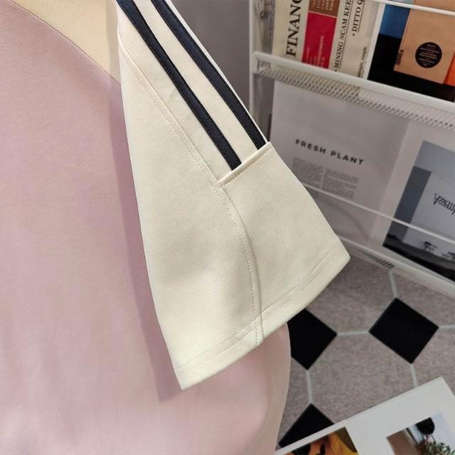 100%純棉美式小清新字母短袖t恤男女夏季休閒甜美拼接學生上衣ins