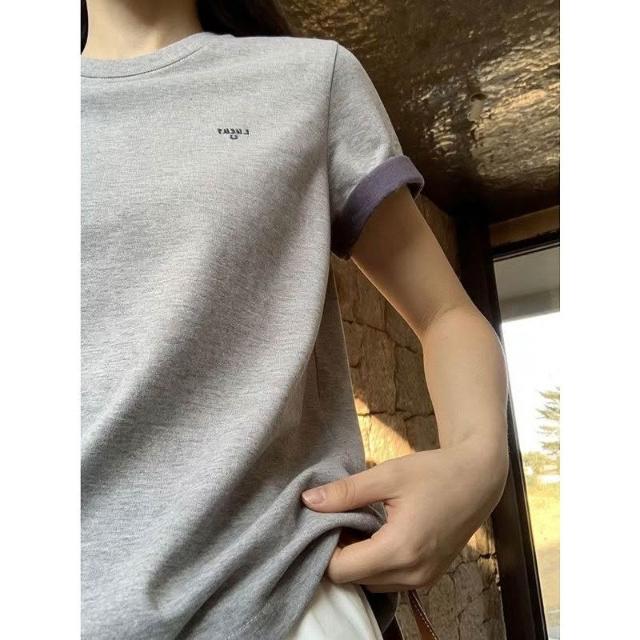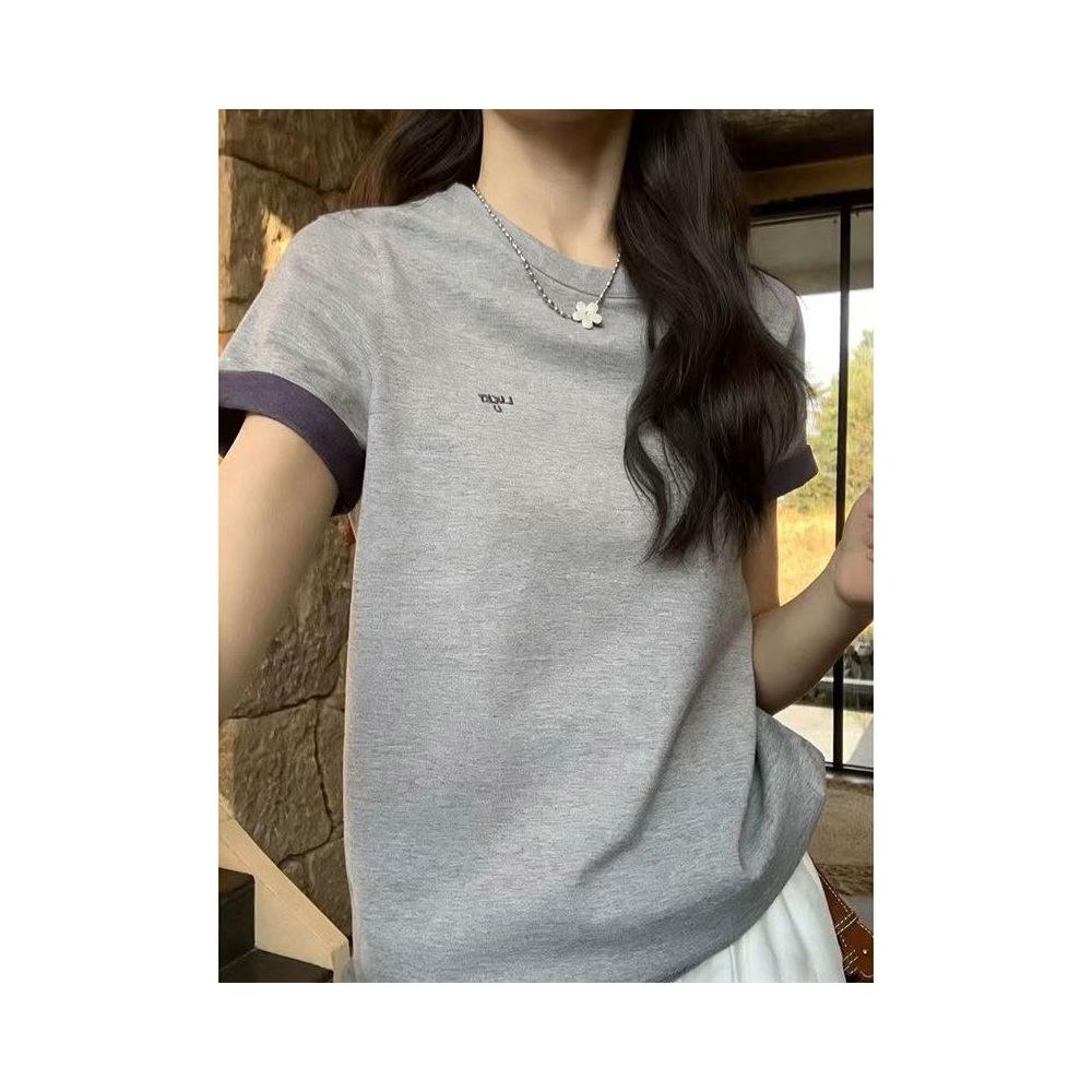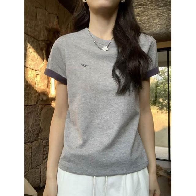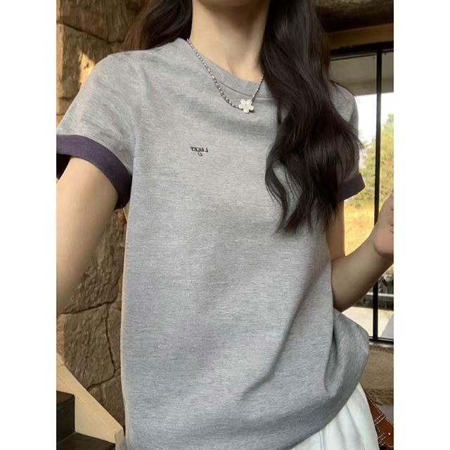 淺灰色正肩撞色短袖t恤女2026夏季新款小衆設計感美式超好看上衣
