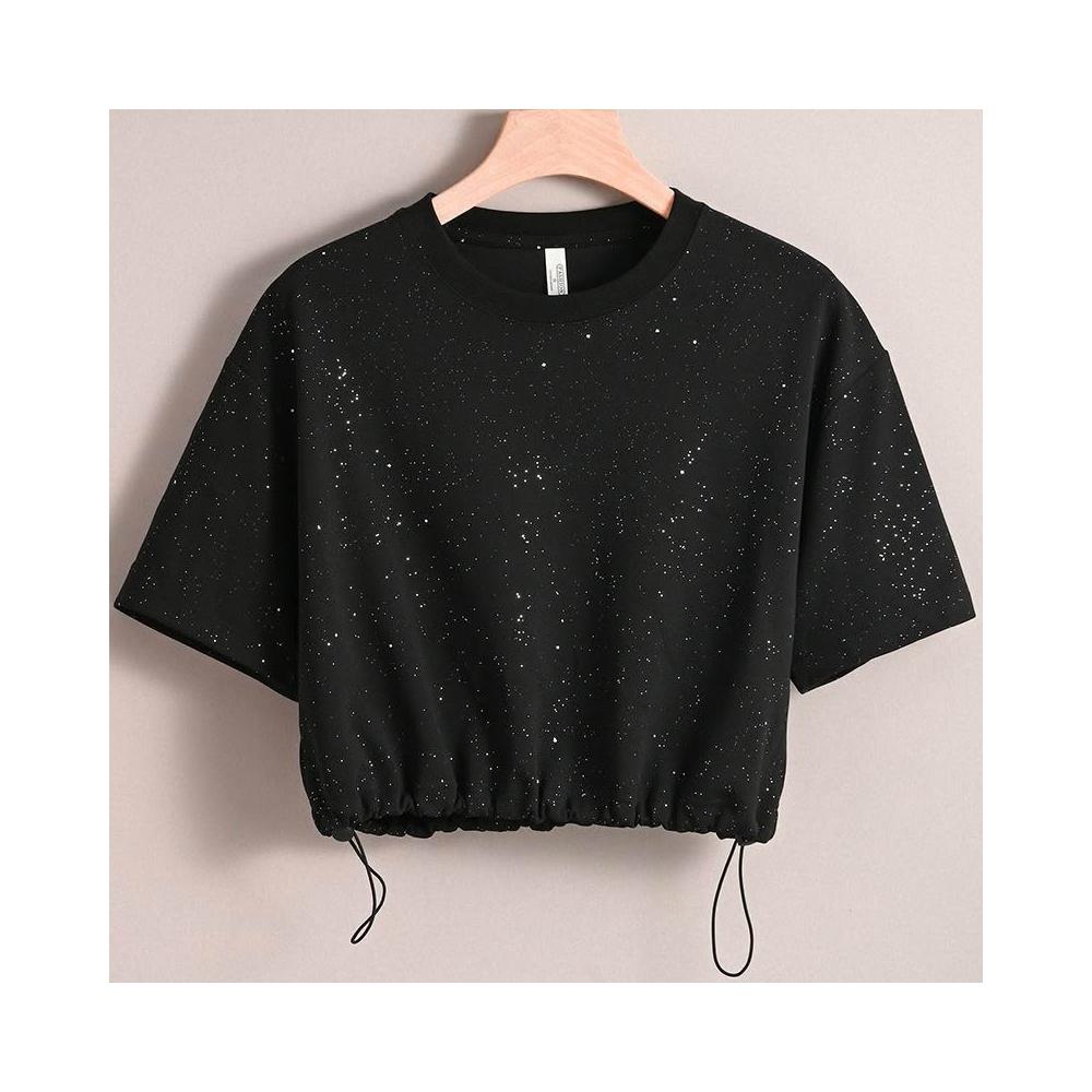 滿天星新款T恤女夏季短袖辣妹ins風寬鬆短款高腰白色上衣顯瘦通勤