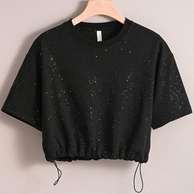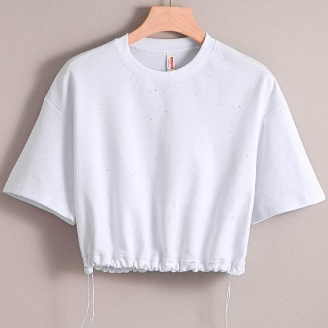 滿天星新款T恤女夏季短袖辣妹ins風寬鬆短款高腰白色上衣顯瘦通勤