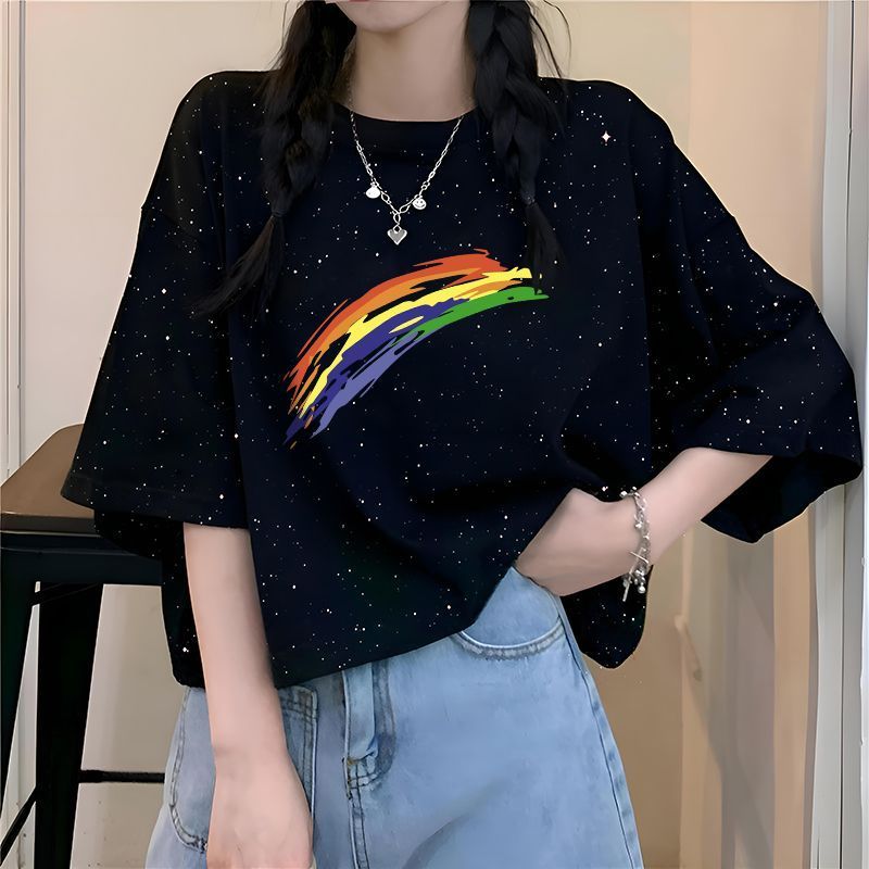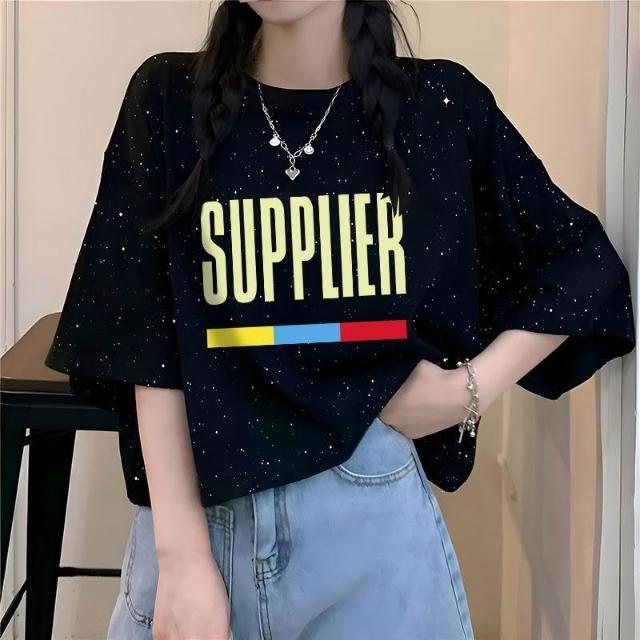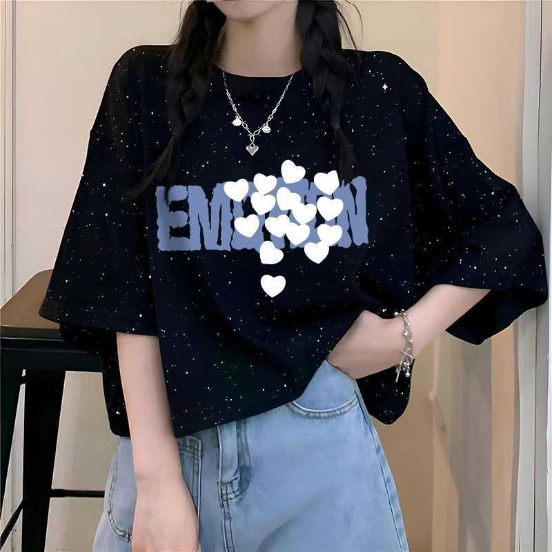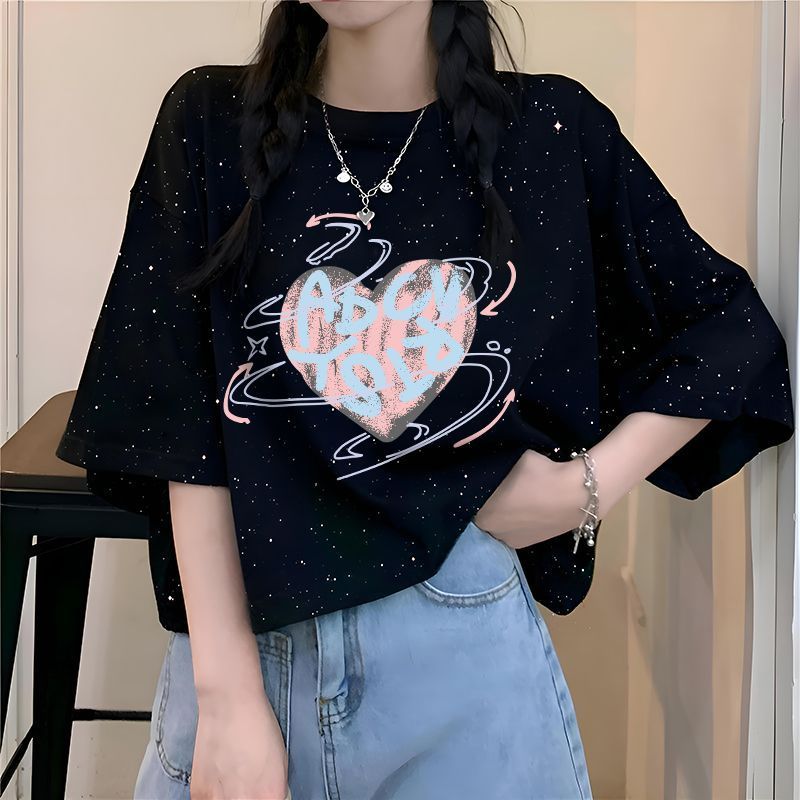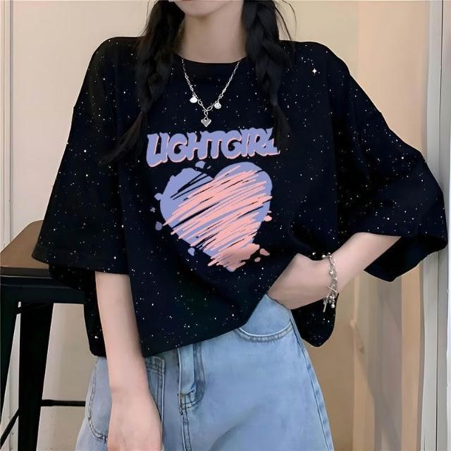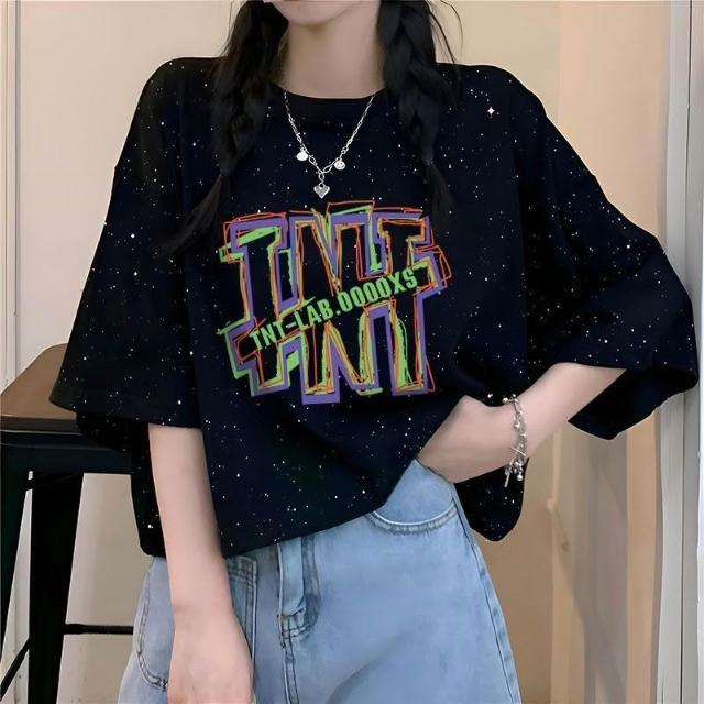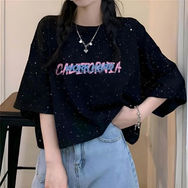 滿天星韓版ins夏季2026新款純棉寬鬆百搭短袖T恤女字母印花上衣潮