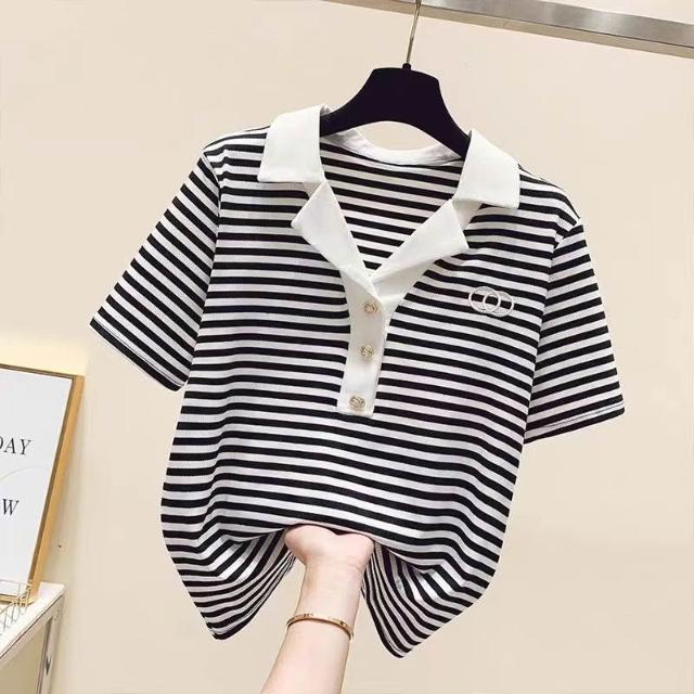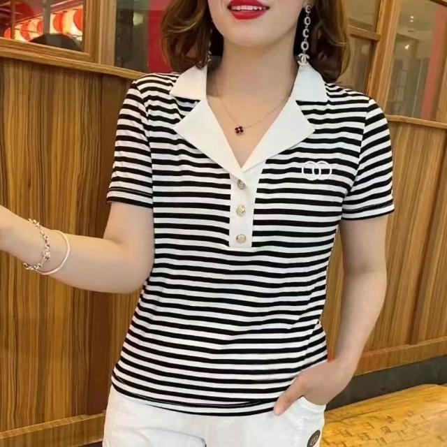 2026夏季新款短袖t恤女POLO衫時尚中年媽媽遮肉條紋上衣外穿小衫
