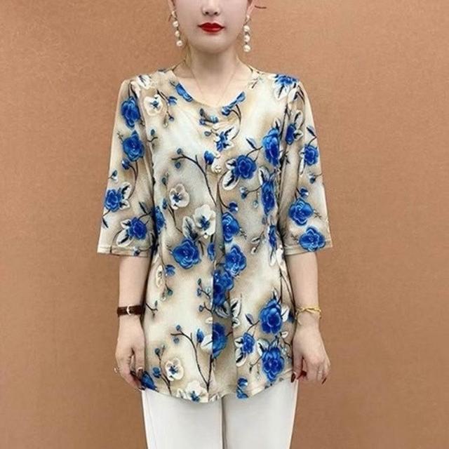 新款夏季印花T恤媽媽裝中袖中老年寬鬆遮肚子顯瘦大碼女裝上衣女