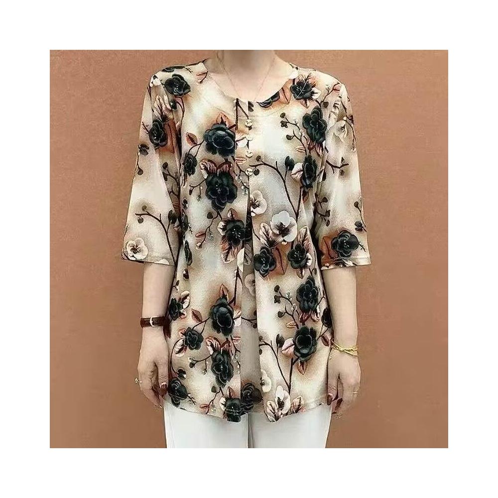 新款夏季印花T恤媽媽裝中袖中老年寬鬆遮肚子顯瘦大碼女裝上衣女