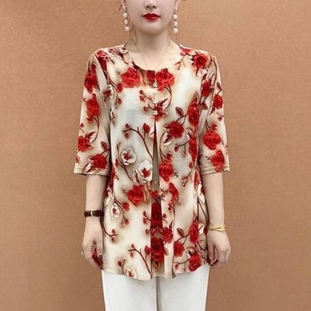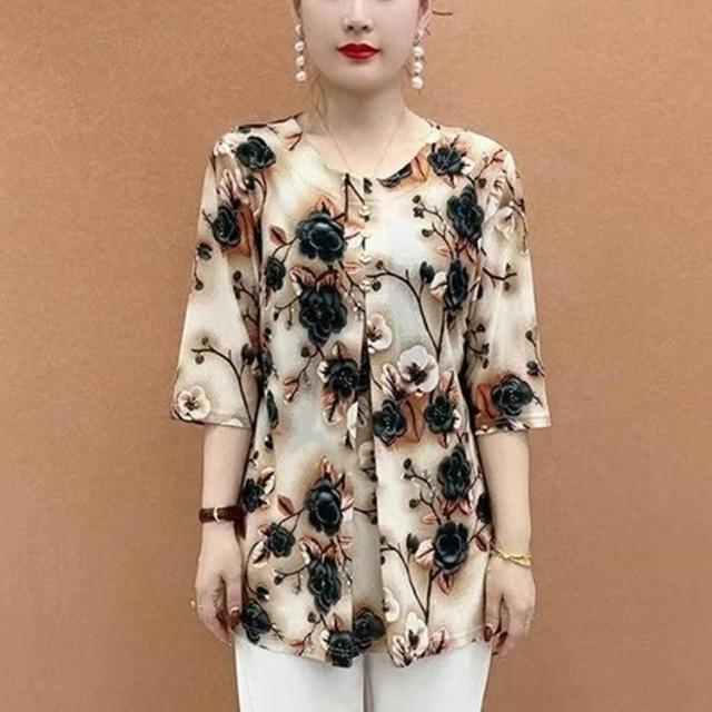 新款夏季印花T恤媽媽裝中袖中老年寬鬆遮肚子顯瘦大碼女裝上衣女