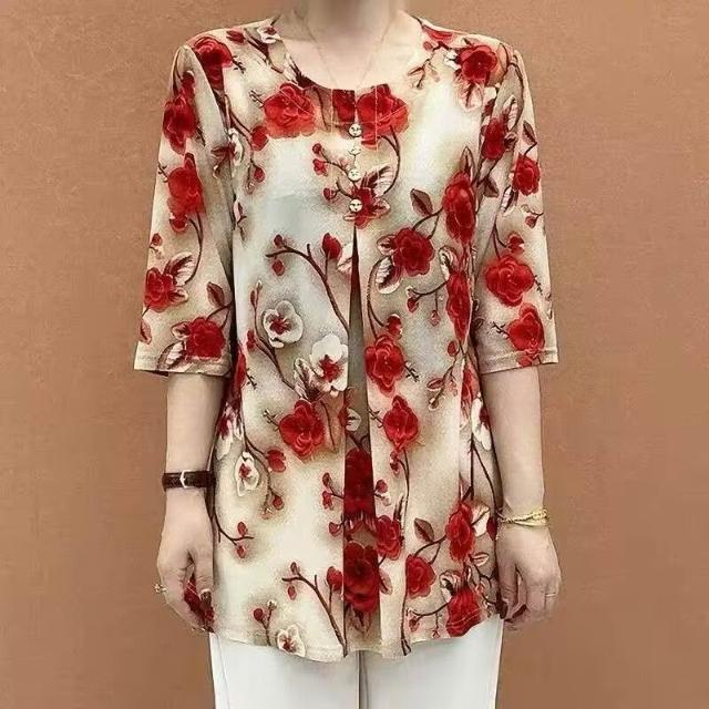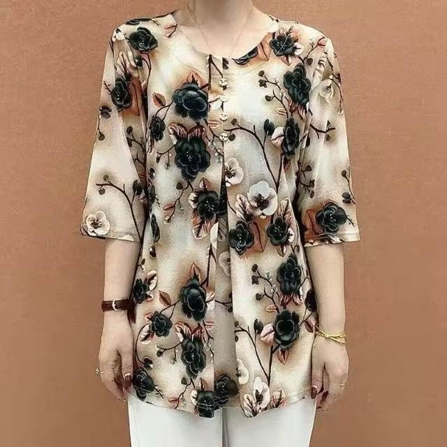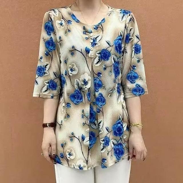 新款夏季印花T恤媽媽裝中袖中老年寬鬆遮肚子顯瘦大碼女裝上衣女