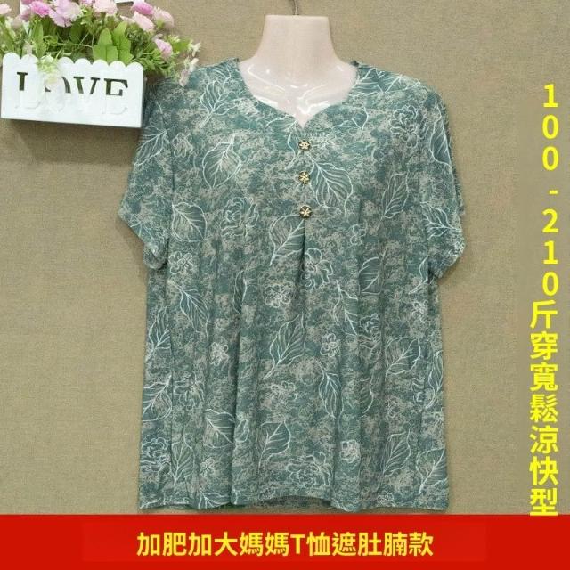 中老年女裝夏裝媽媽裝冰絲短袖T恤加肥加大碼中年寬鬆上衣40-50歲