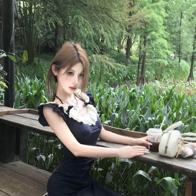 2026新款純欲辣妹小香風蕾絲拼接掛脖長裙蝴蝶結性感穿搭夏天裙子