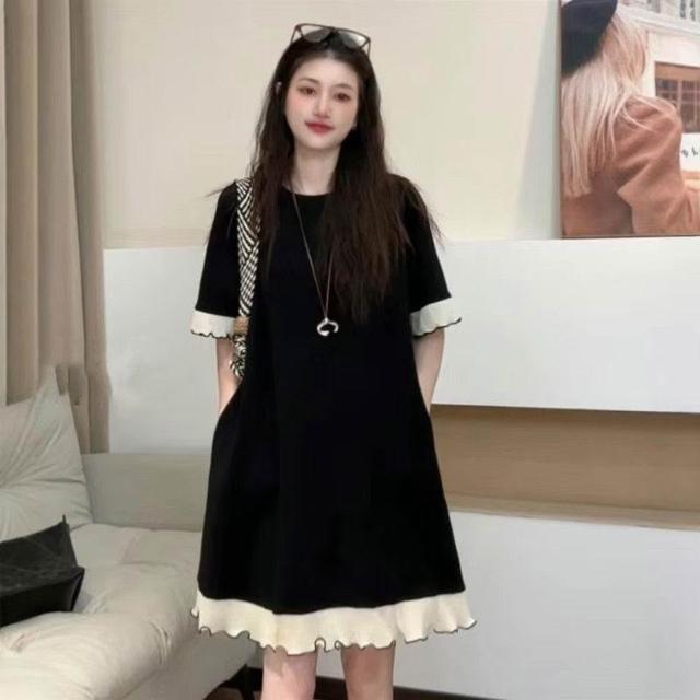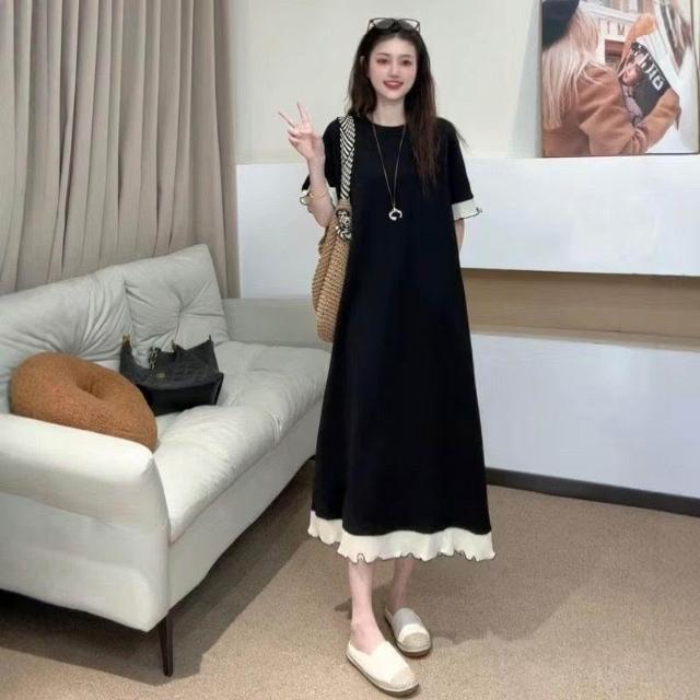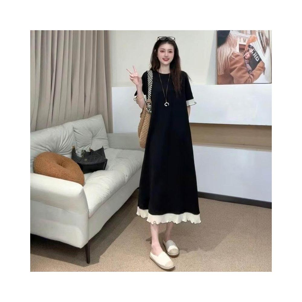 胖mm特大碼300斤夏季時尚寬鬆遮肉短袖輕奢白花裙邊直筒連衣裙女