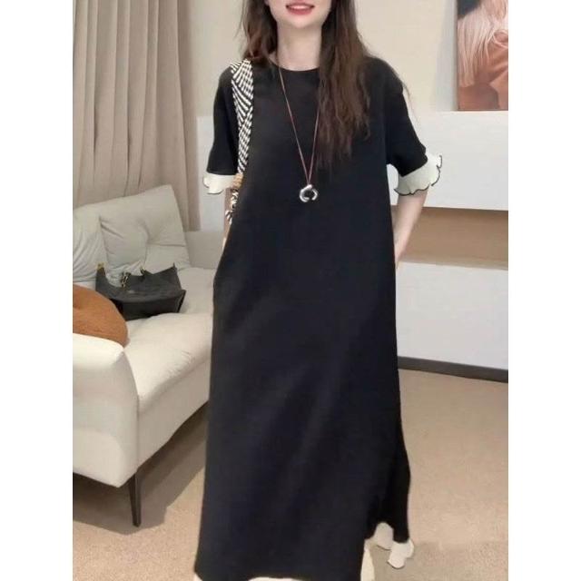 胖mm特大碼300斤夏季時尚寬鬆遮肉短袖輕奢白花裙邊直筒連衣裙女