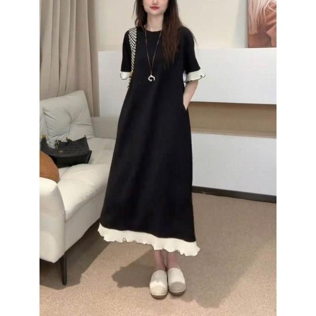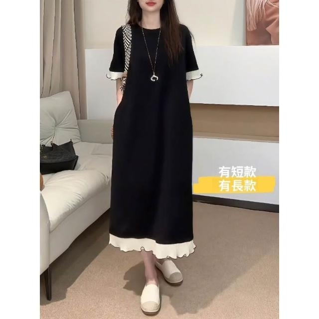 胖mm特大碼300斤夏季時尚寬鬆遮肉短袖輕奢白花裙邊直筒連衣裙女