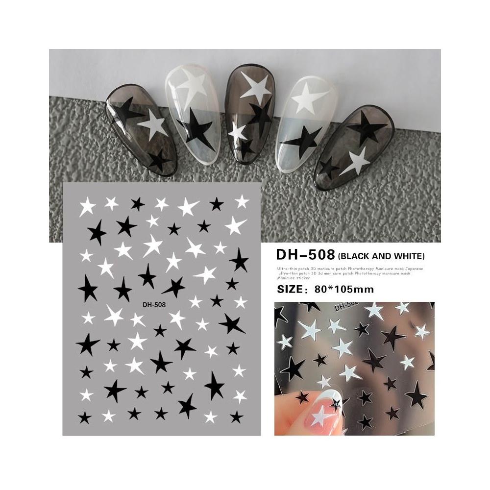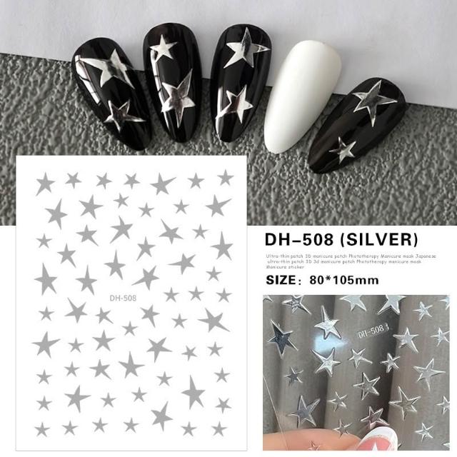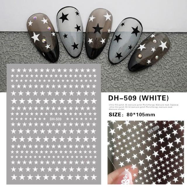BEAGLE 【台灣現貨】日系爆款 3D背膠 美甲貼 各式星星 五角星 黑白 金銀 藍粉 超薄 背膠貼紙 美甲貼紙