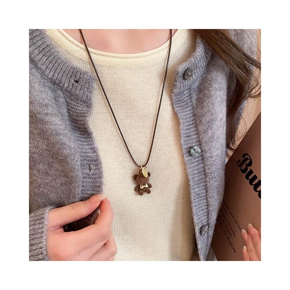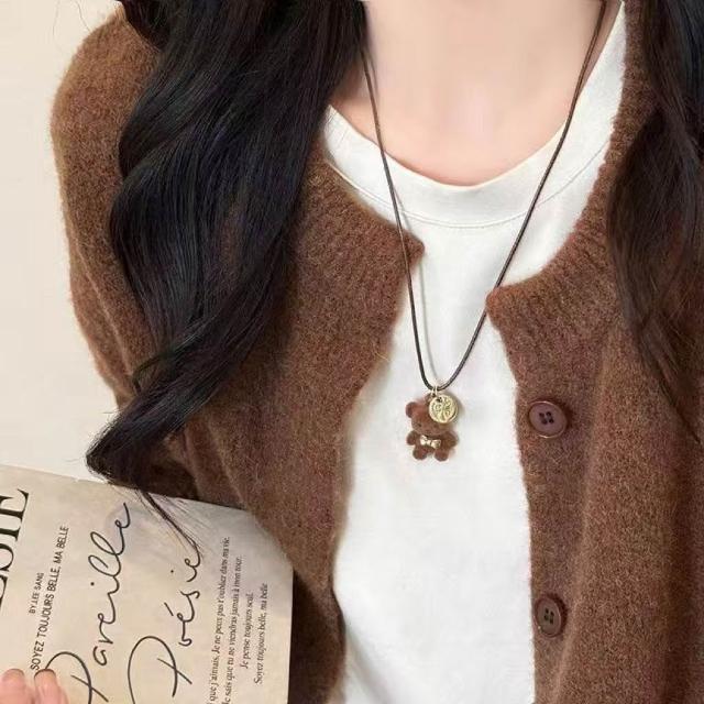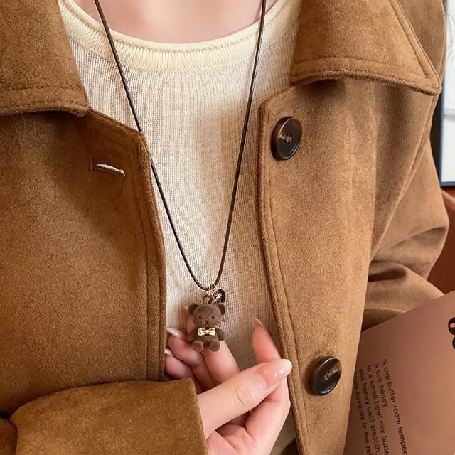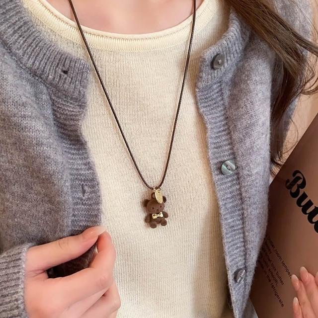 BEAGLE 【台灣現貨】日韓流行 可愛毛絨 咖色小熊 項鍊 精緻百搭 ins 小眾設計 吊墜 頸鍊 鎖骨鍊 飾品
