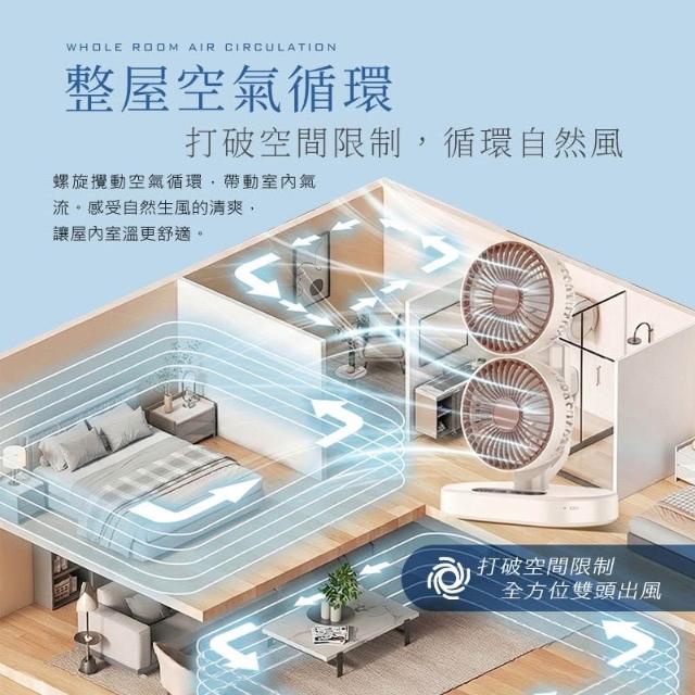 S8 日系簡約雙頭循環扇|桌面/壁掛兩用・270°摺疊・6段風速 (Type-C供電)