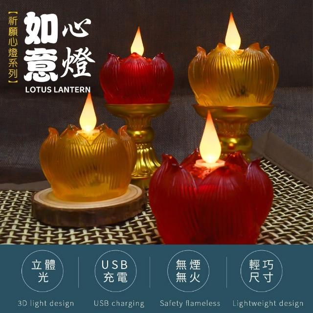 新韻傳音立體光充電款如意心燈|USB充電蓮花燈|LED電子蠟燭|環保供佛燈|佛堂寺廟居家供奉|Y182C