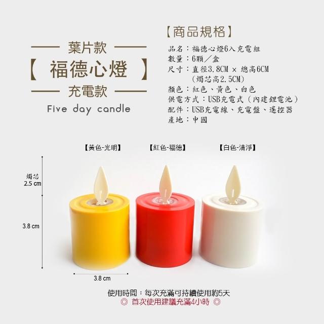新韻傳音福德心燈6入充電組|USB電子蠟燭供佛燈|尖形燭芯造型|法會祈福用燈|6入附充電盤|遙控功能 Y209
