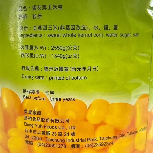 飯友甜玉米粒 2.55kg、340g(易開罐)
