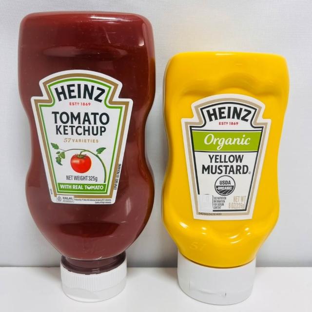Heinz 亨氏【億明食品】蕃茄醬 番茄醬(倒瓶)325g 、有機黃芥末 黃芥末醬(倒瓶) 226g