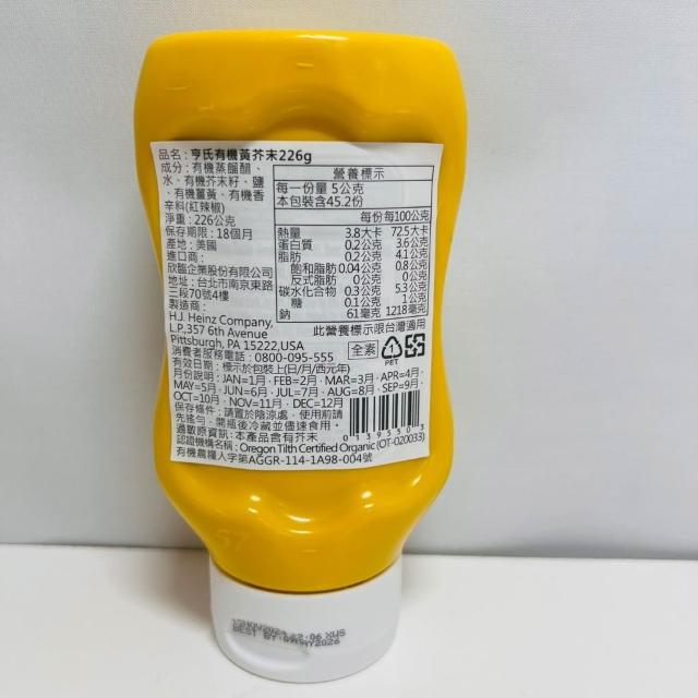 Heinz 亨氏【億明食品】蕃茄醬 番茄醬(倒瓶)325g 、有機黃芥末 黃芥末醬(倒瓶) 226g