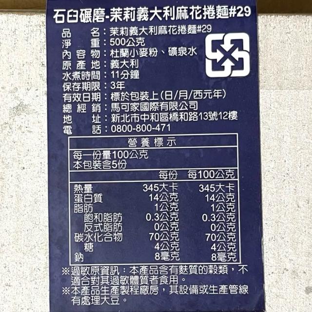 Molisana 義大利茉莉【億明食品】29號麻花捲麵 500g|獨特扭紋設計|提升醬汁包覆力