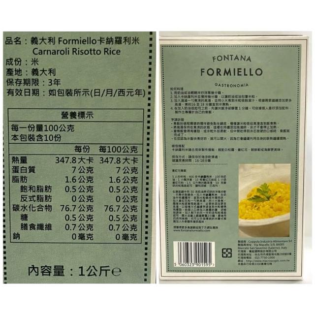FORMIELLO 【億明食品】義大利米 ARBORIO阿伯瑞歐、CARNAROLI卡納羅利 1kg|芙米樂 A米、C米
