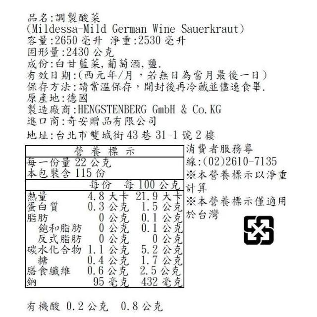 Hengstenberg 巴伐利亞酸菜 2.65kg|德國進口❗經典酸爽|德式風味|低卡健康|燉肉推薦