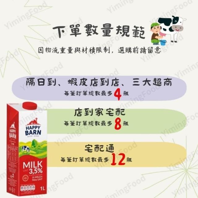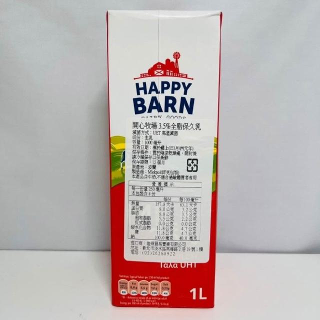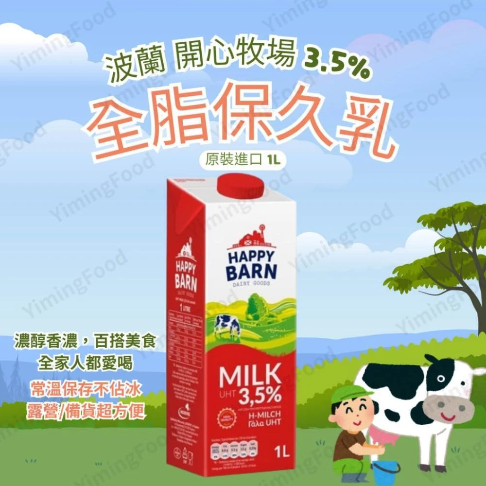 億明食品開心牧場 保久乳 3.5% 全脂 1L|波蘭進口 常溫保存推薦