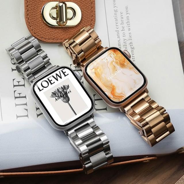 實心三株錶帶 apple watch 11代 s10 9 8 7 6 SE 金屬錶帶 不鏽鋼 蘋果手錶帶 42 46mm