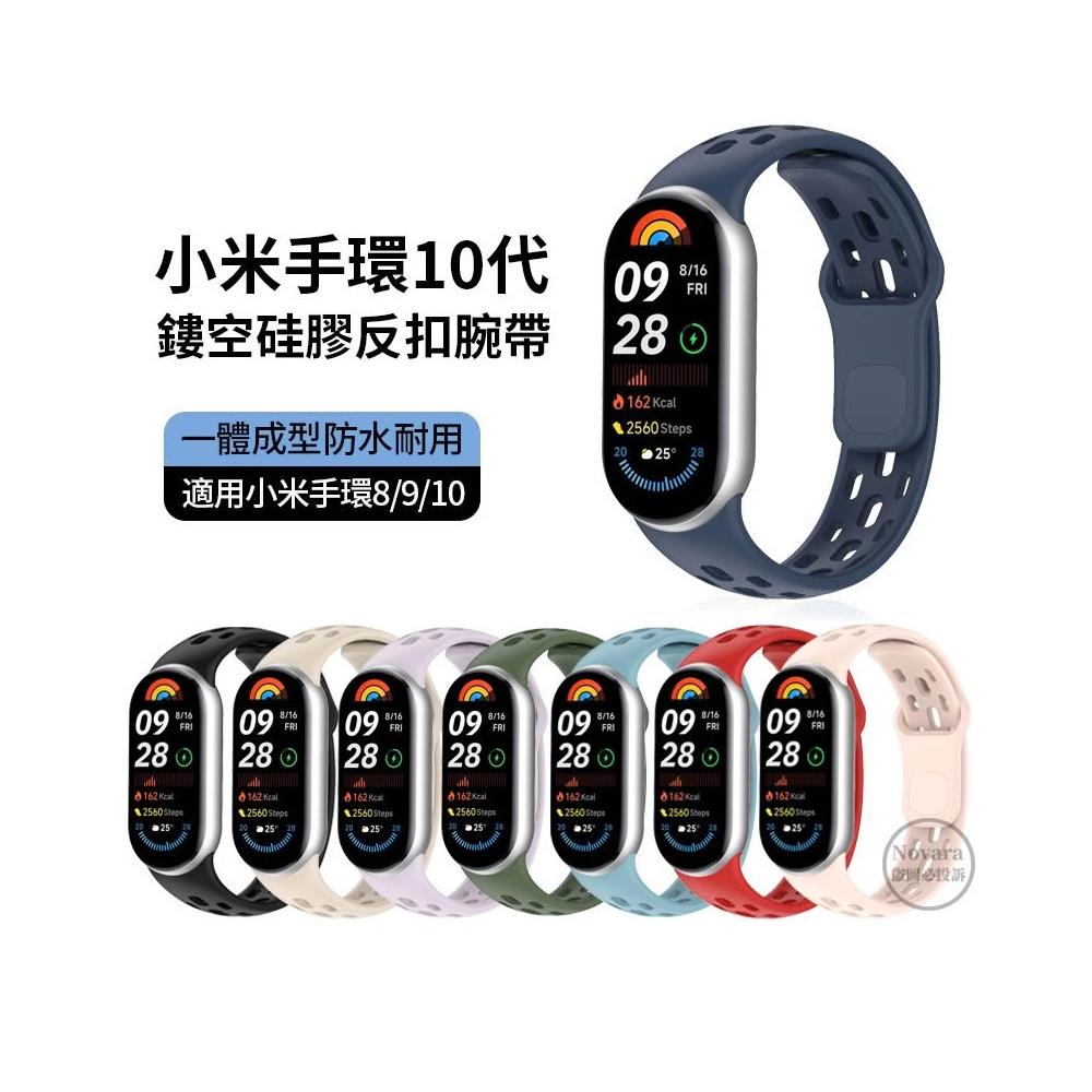 小米手環10/9/8錶帶 透氣反扣硅膠小米手錶帶 小米10錶帶 小米手環9腕帶 小米8錶帶 NFC 替換腕帶