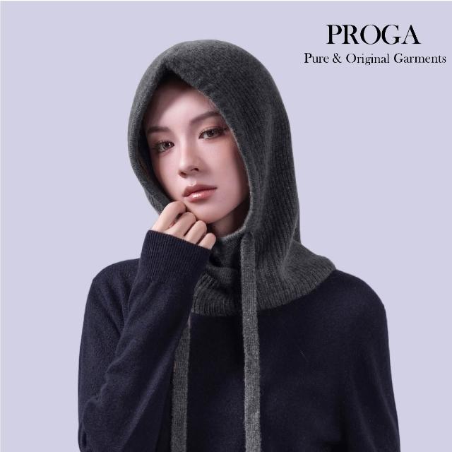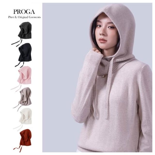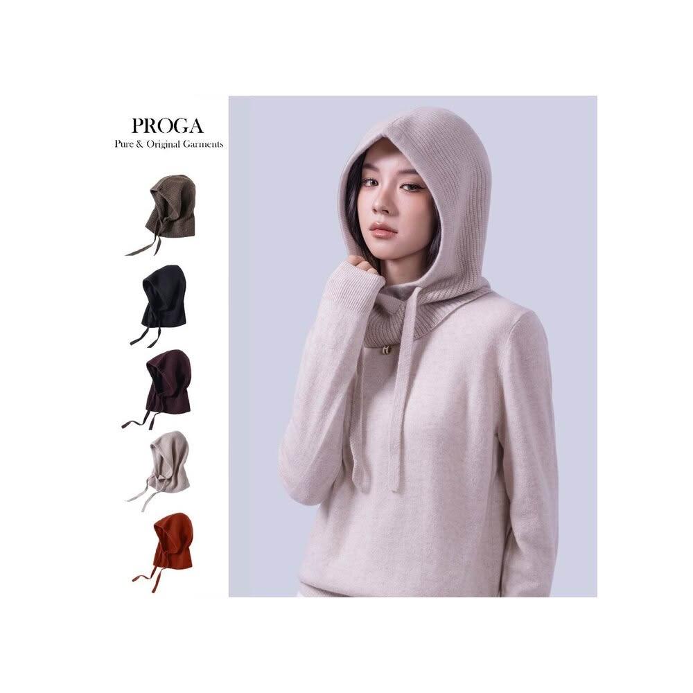 PROGAPRG25027 Cashmere羊絨美麗諾羊毛混紡 套頭連帽針織圍巾 抽繩設計 厚暖款 (5色)