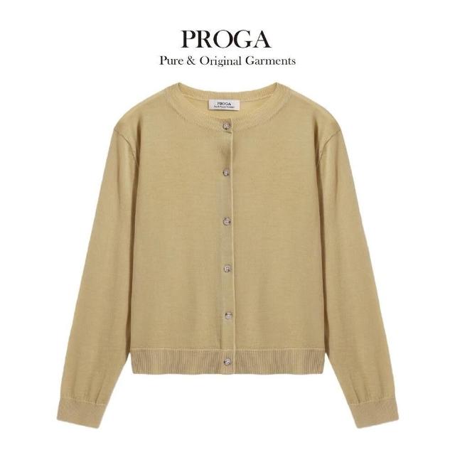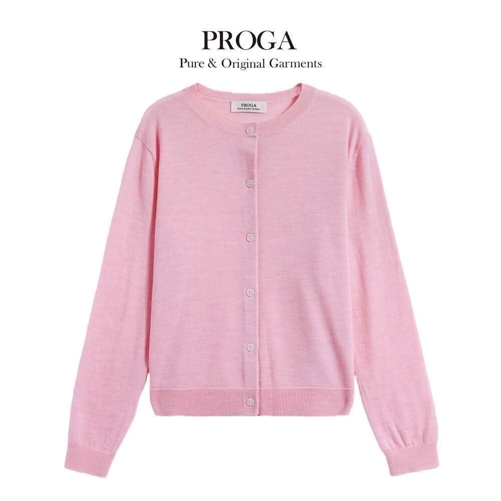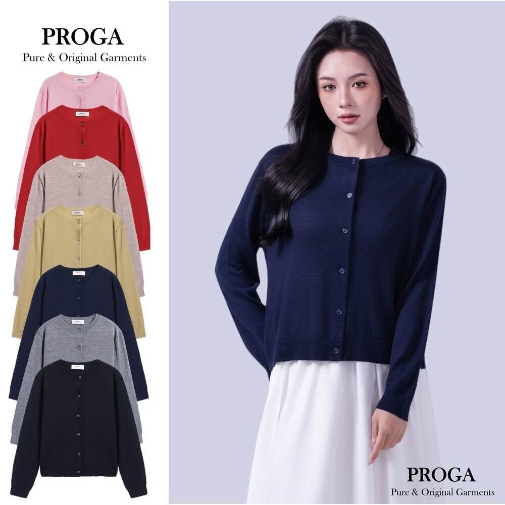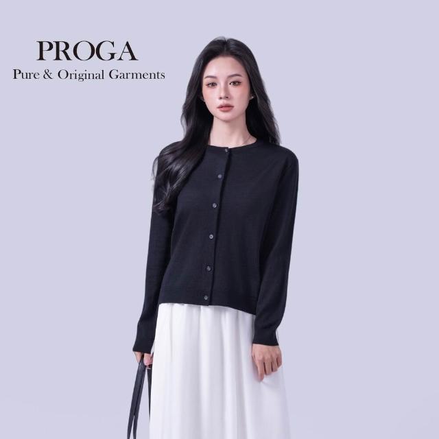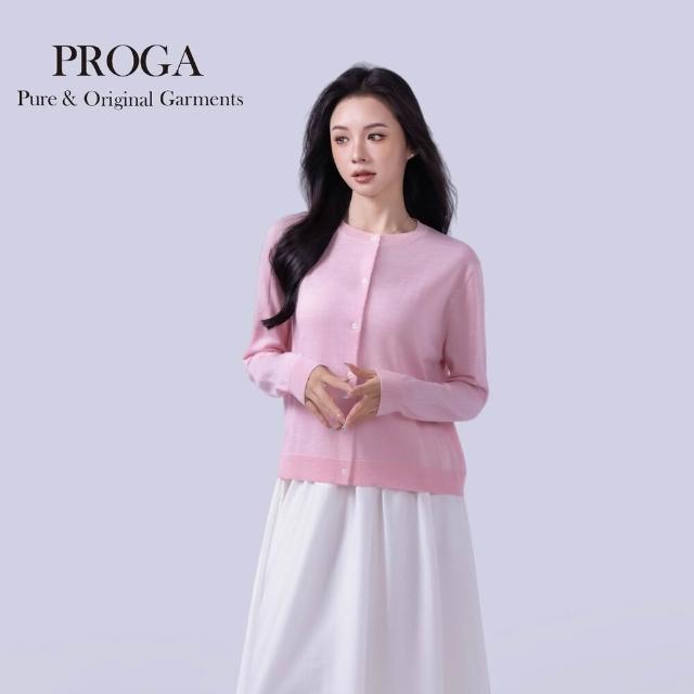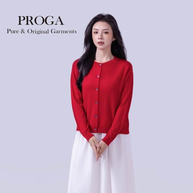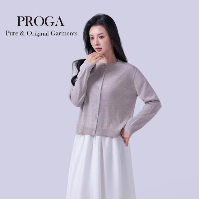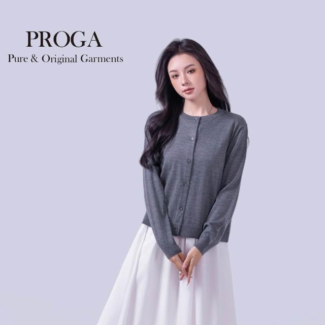PROGAPG25002 100%純美麗諾羊毛 圓領鈕扣針織長袖日系毛衣女 開襟衫 16針細柔款7色 透氣