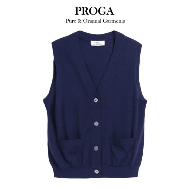 PROGAPG25003 100%純美麗諾羊毛 無袖口袋鈕扣針織背心毛衣女 16針細柔款4色 透氣保暖 抗