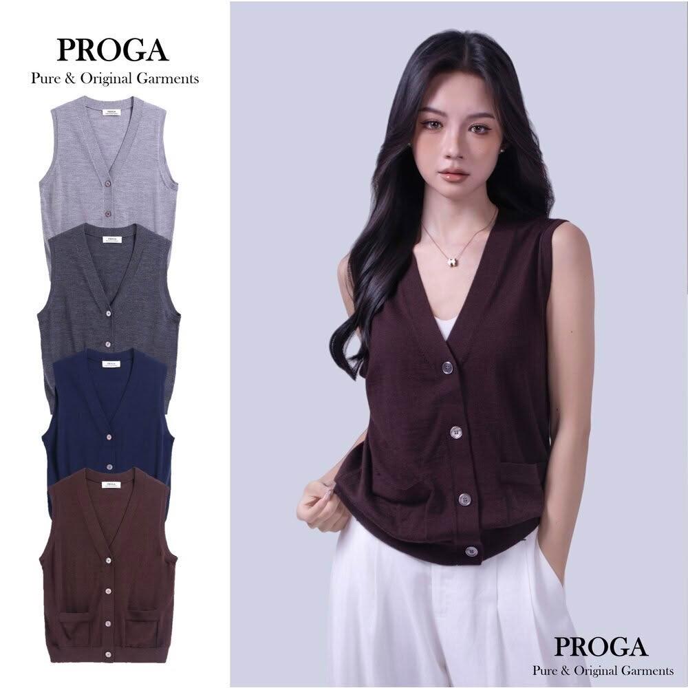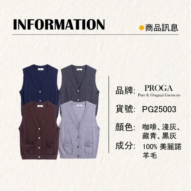 PROGAPG25003 100%純美麗諾羊毛 無袖口袋鈕扣針織背心毛衣女 16針細柔款4色 透氣保暖 抗