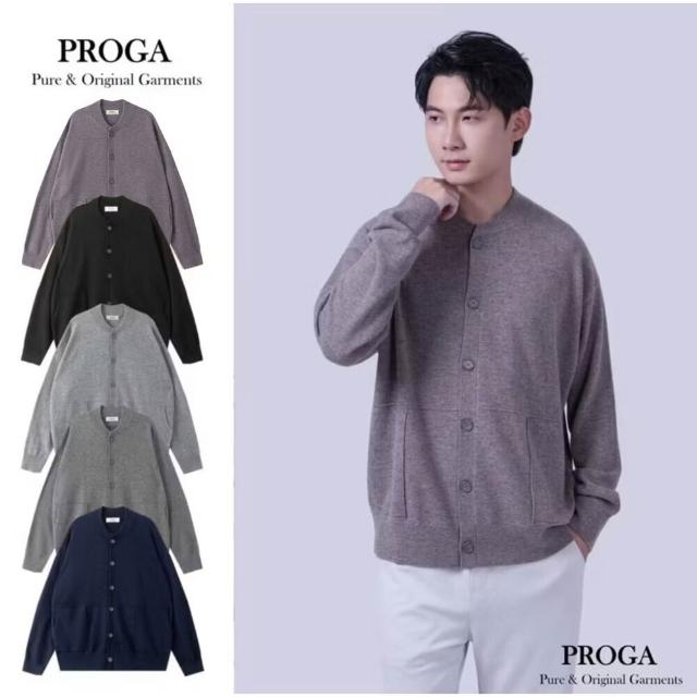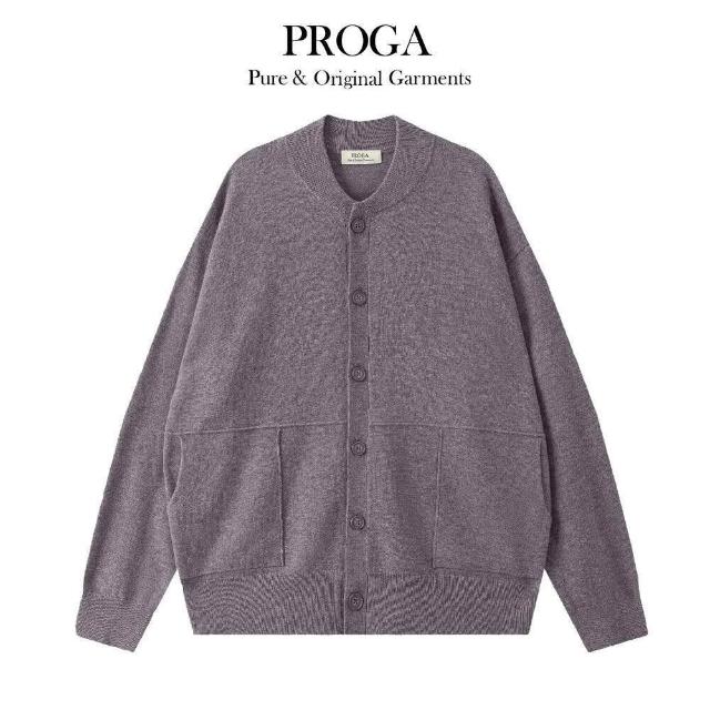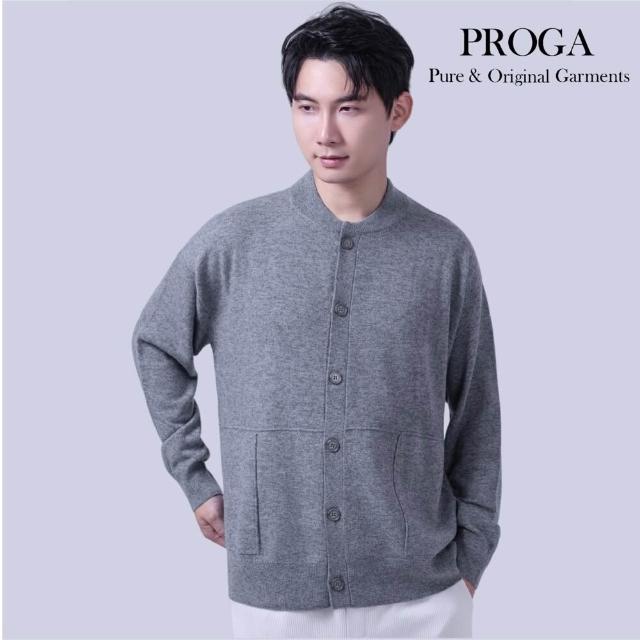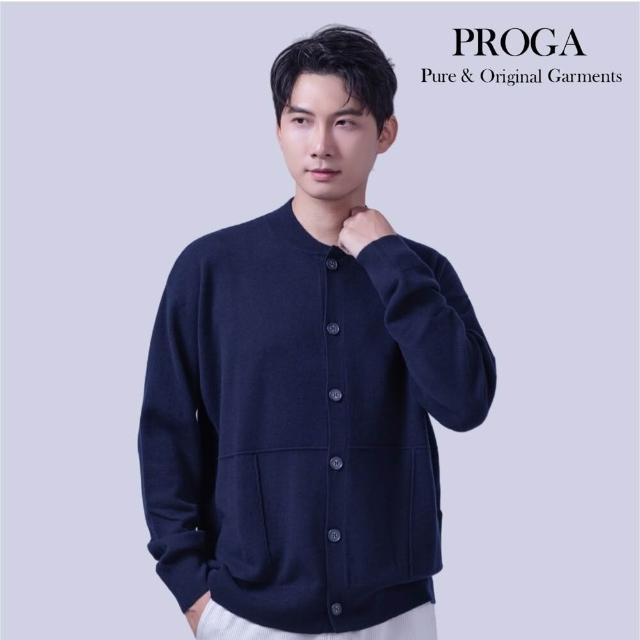 PROGAPG25018 100%純美麗諾羊毛 棒球領鈕扣針織長袖日系毛衣男 開襟衫 標準款5色 透氣保暖