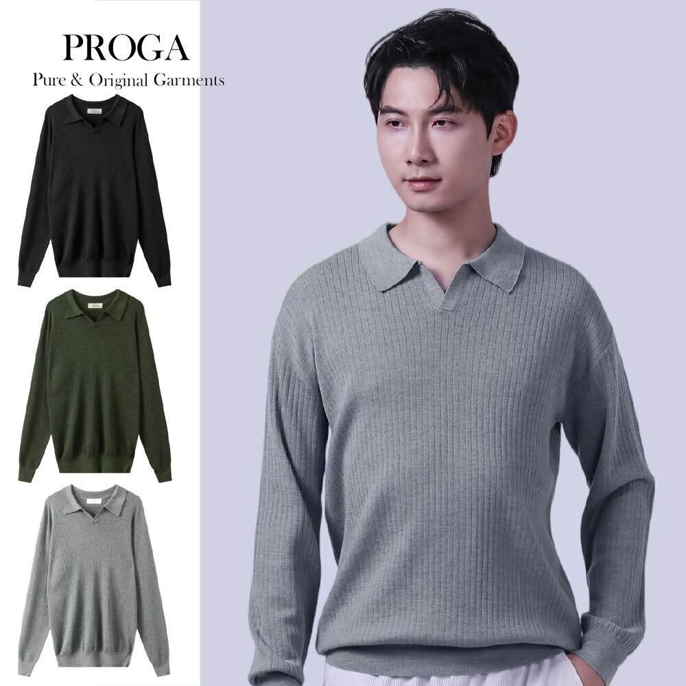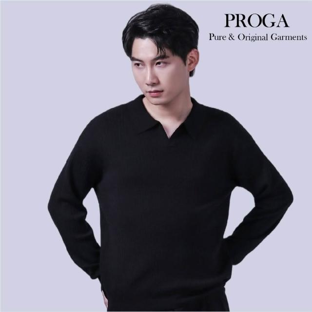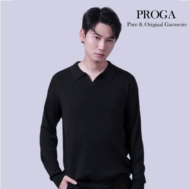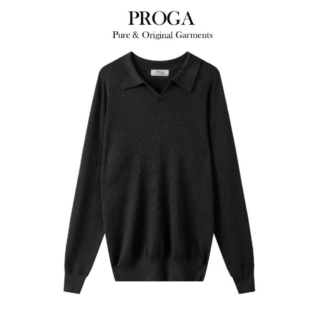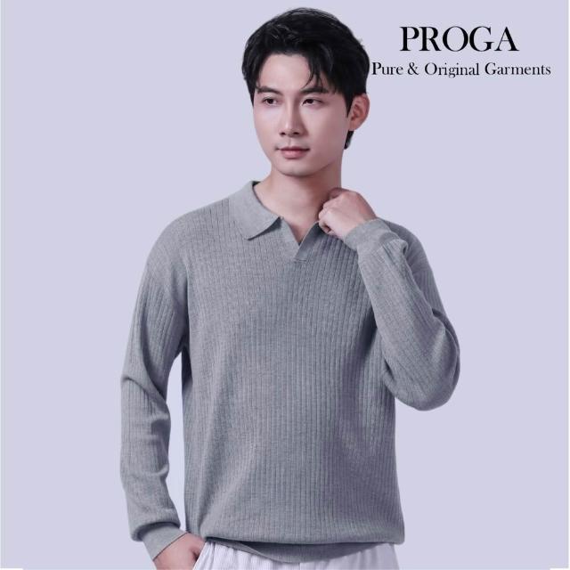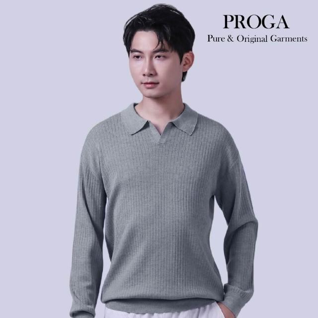 PROGAPG25021 100%純美麗諾羊毛 POLO領針織長袖毛衣男 羅紋坑條 16針細柔款3色 透氣