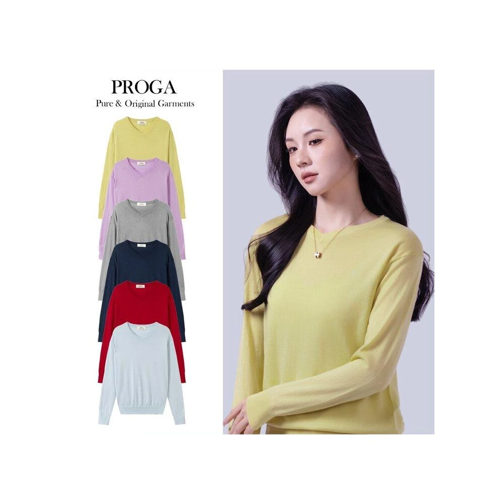 PROGAPG25024 100%純美麗諾羊毛 V領針織長袖毛衣女 16針細柔款 (6色)