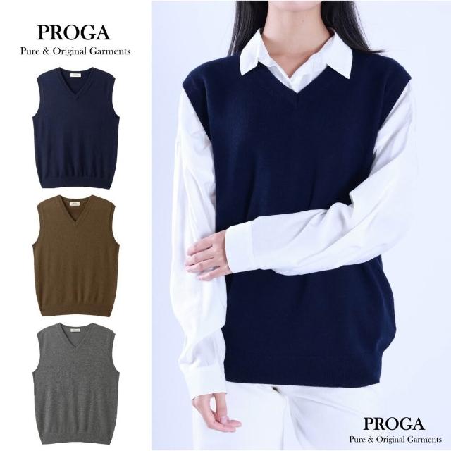 PROGAPG25041 Cashmere羊絨美麗諾羊毛混紡 V領針織無袖背心日系毛衣男女同款 標準款3色