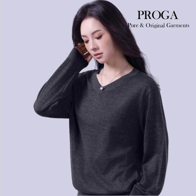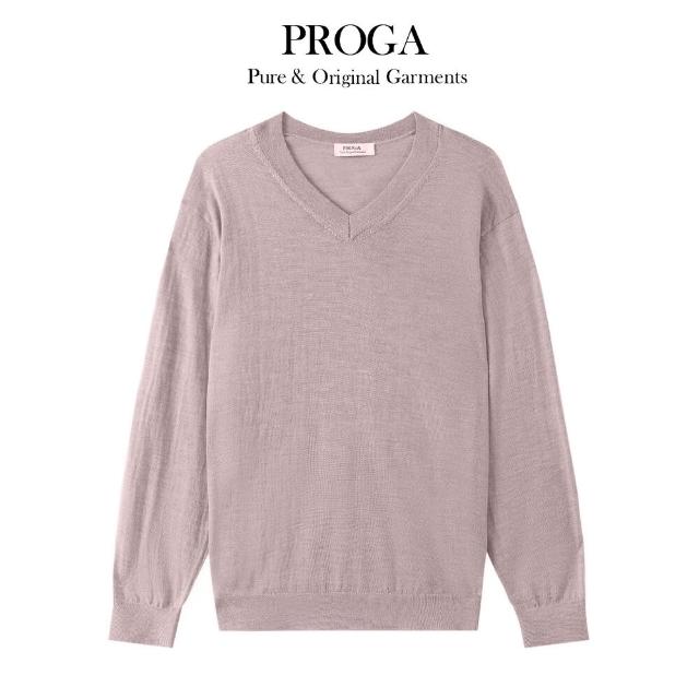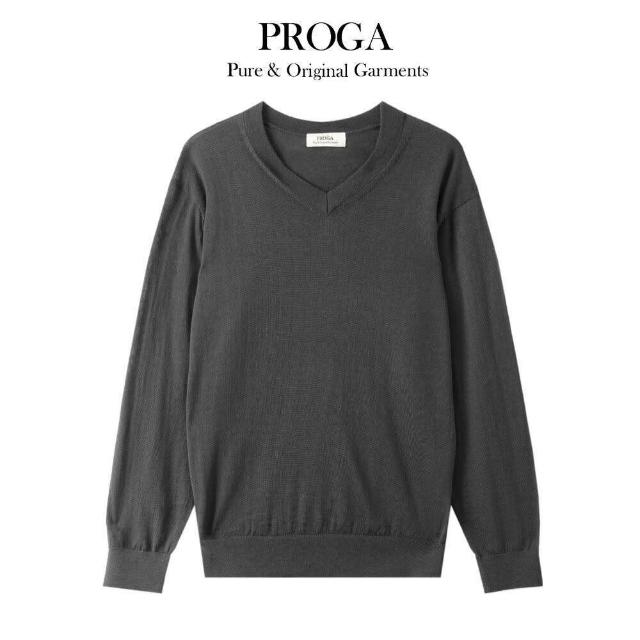 PROGAPG25043 100%純美麗諾羊毛 V領針織長袖日系毛衣男款女著 16針細柔款4色 透氣保暖