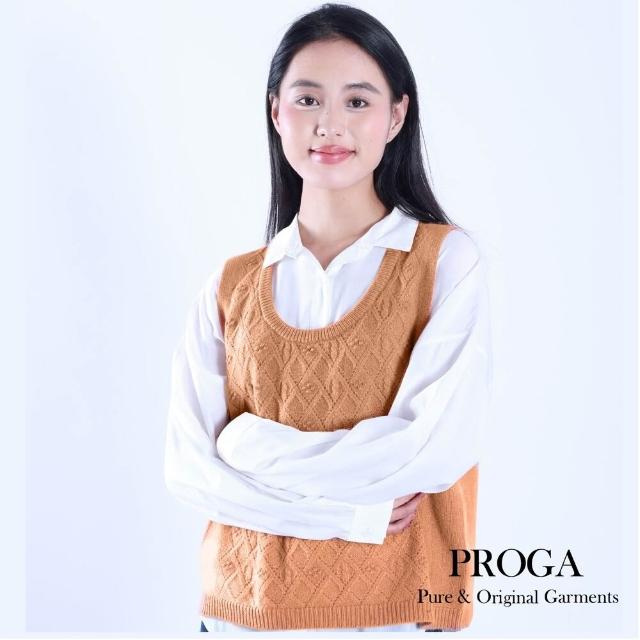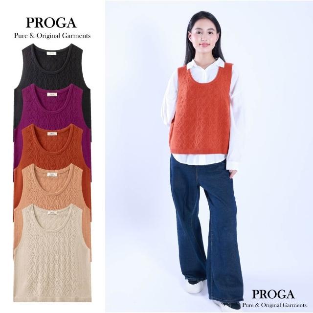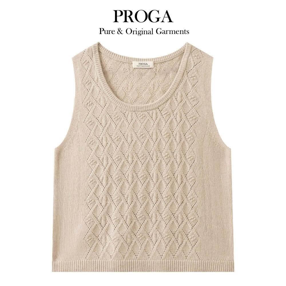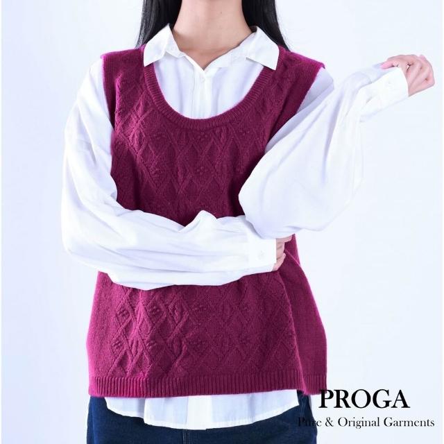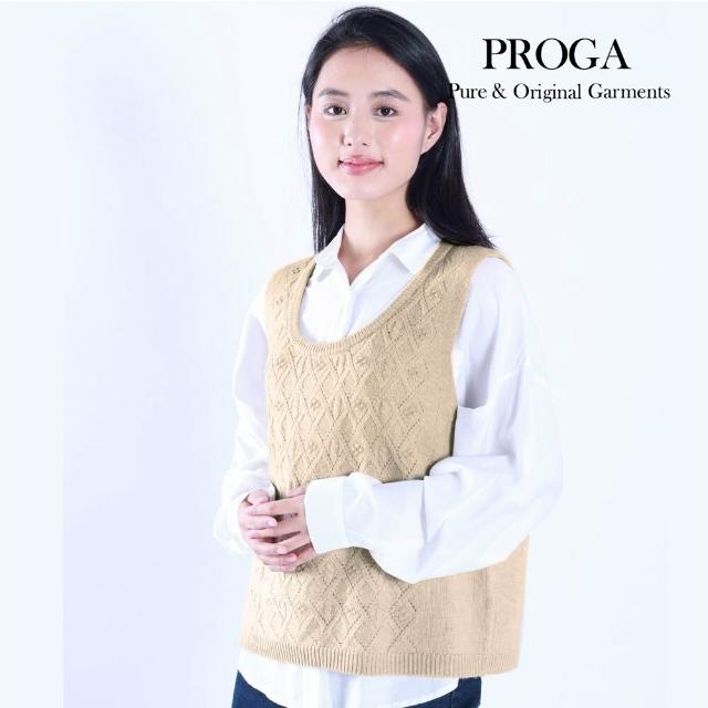 PROGAPRG25004 Cashmere羊絨美麗諾羊毛混紡 高質感針織無袖背心韓系毛衣女 菱格提花 厚暖款