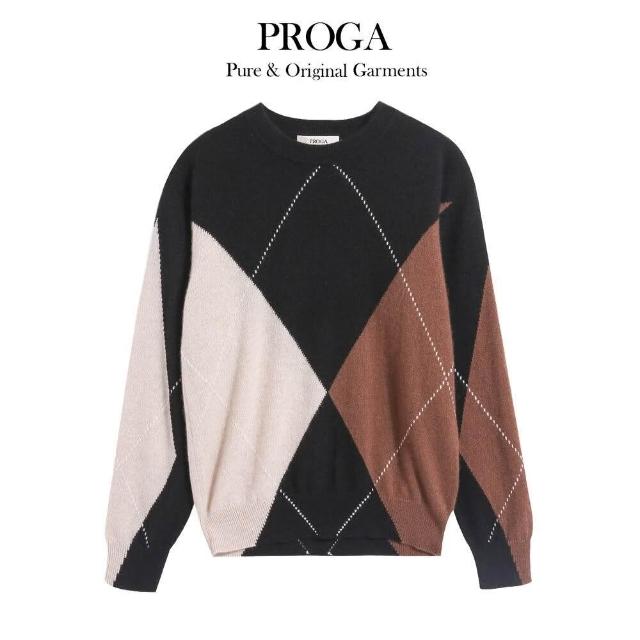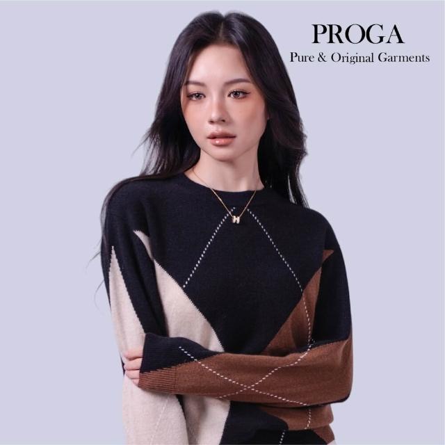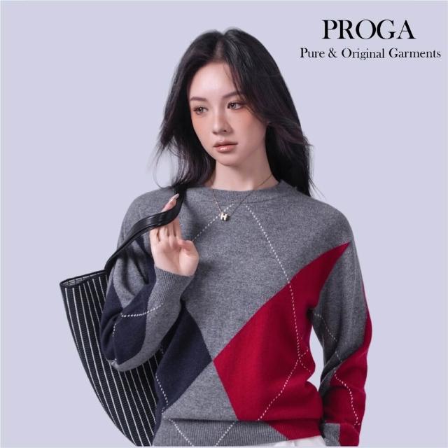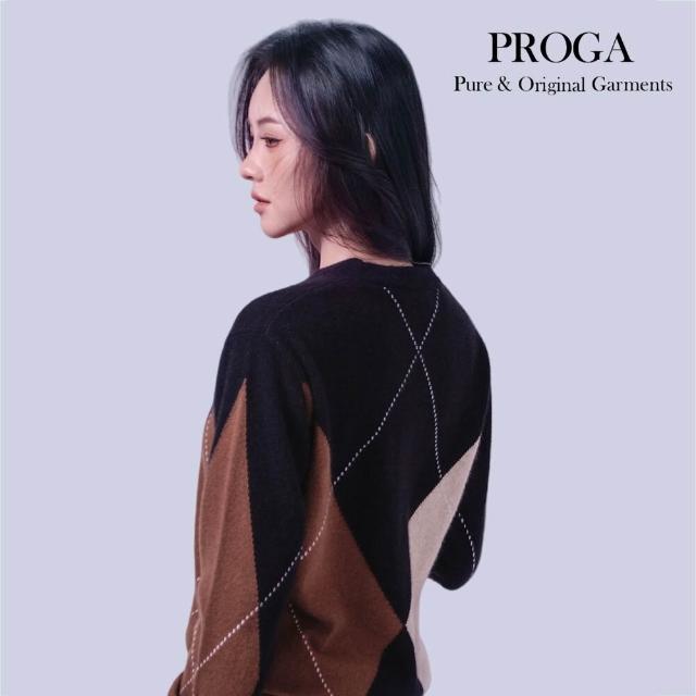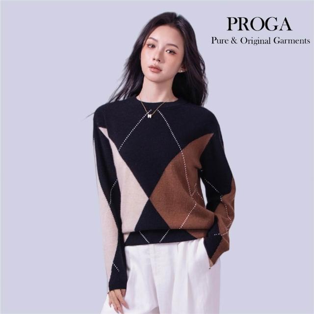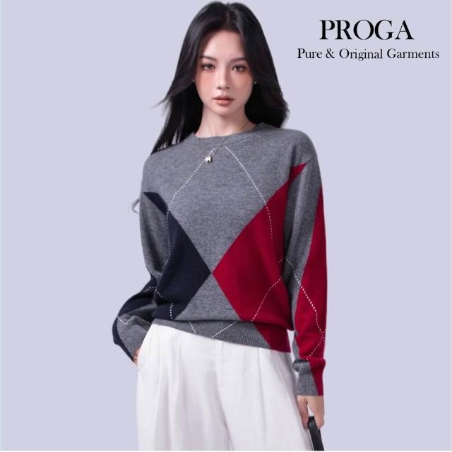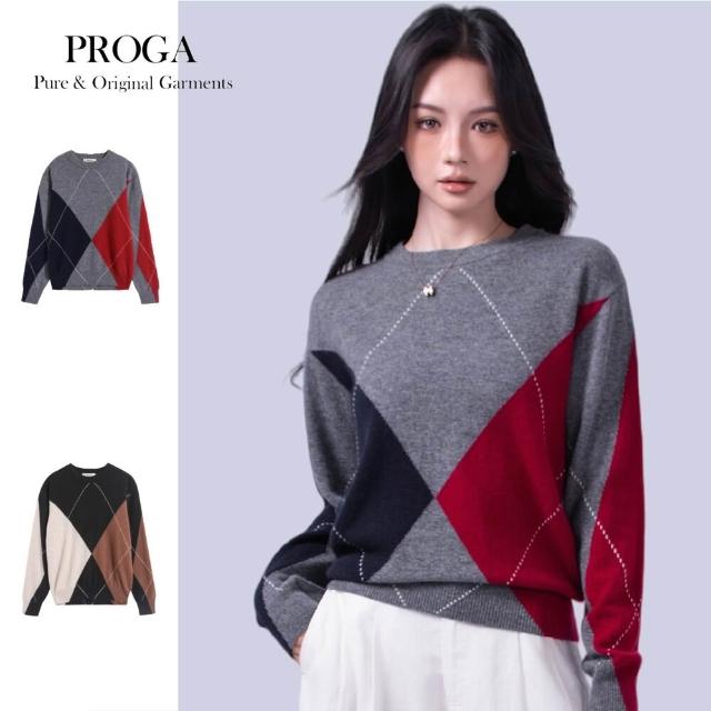 PROGAPRG25020 100%純Cashmere喀什米爾 圓領菱格針織長袖毛衣女 標準款2色極致保暖