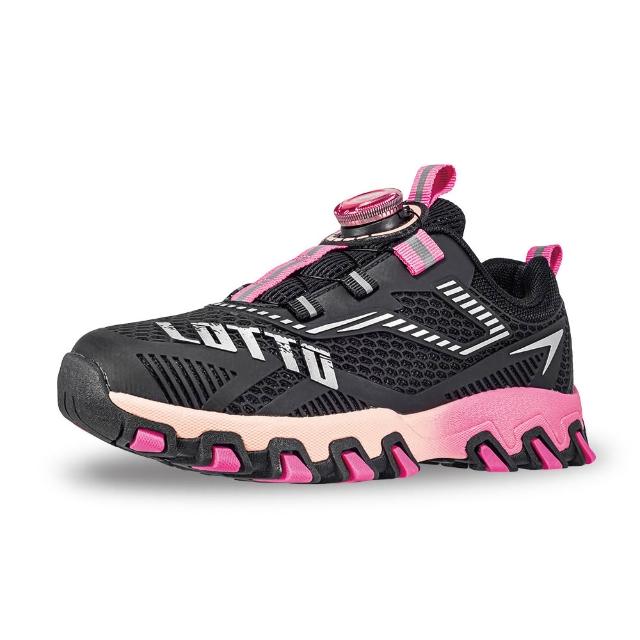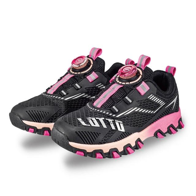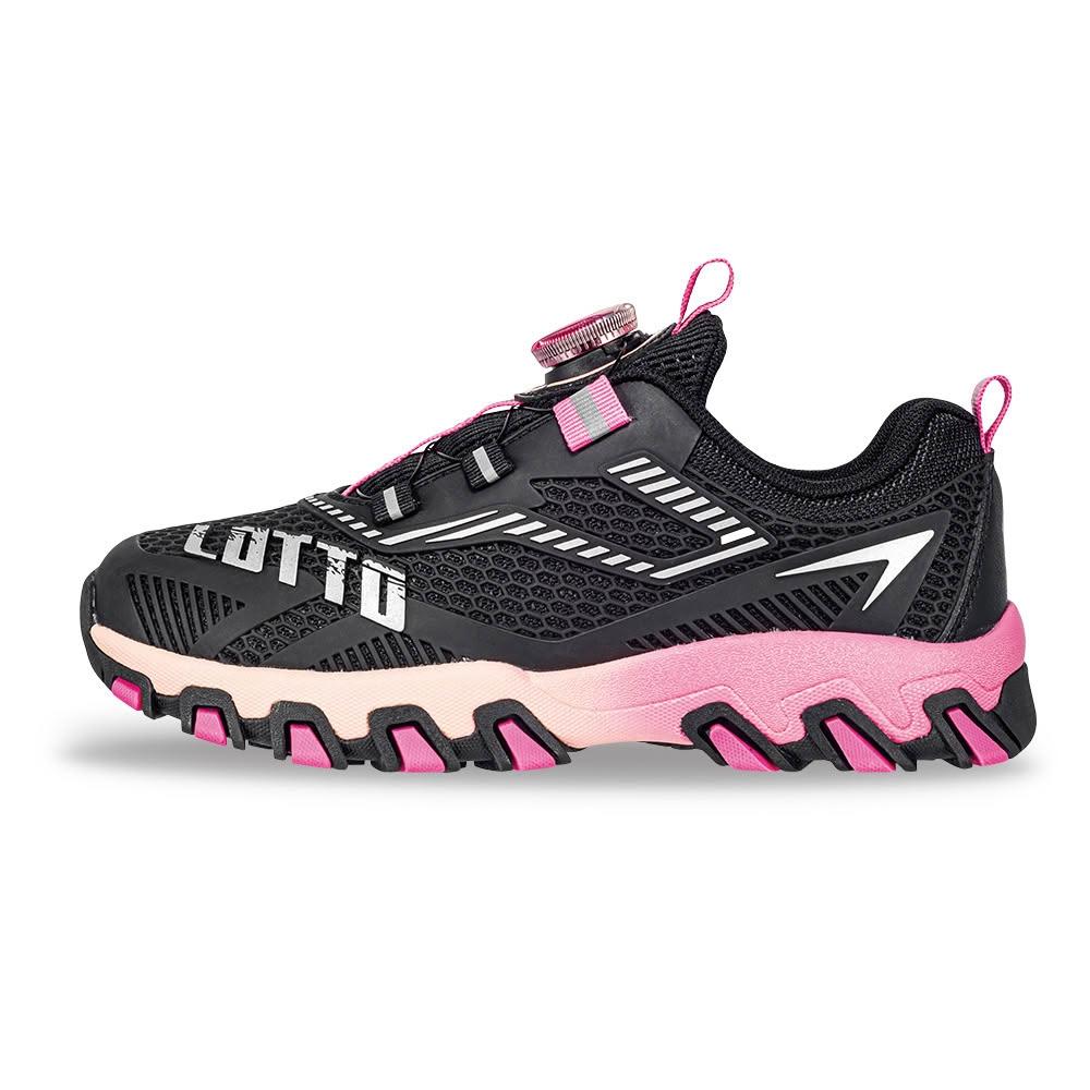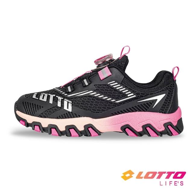 LOTTO樂得 官方 童 游隼KPU轉扣越野跑鞋 (黑/桃紅-LT6AKR6043)21~24.5cm