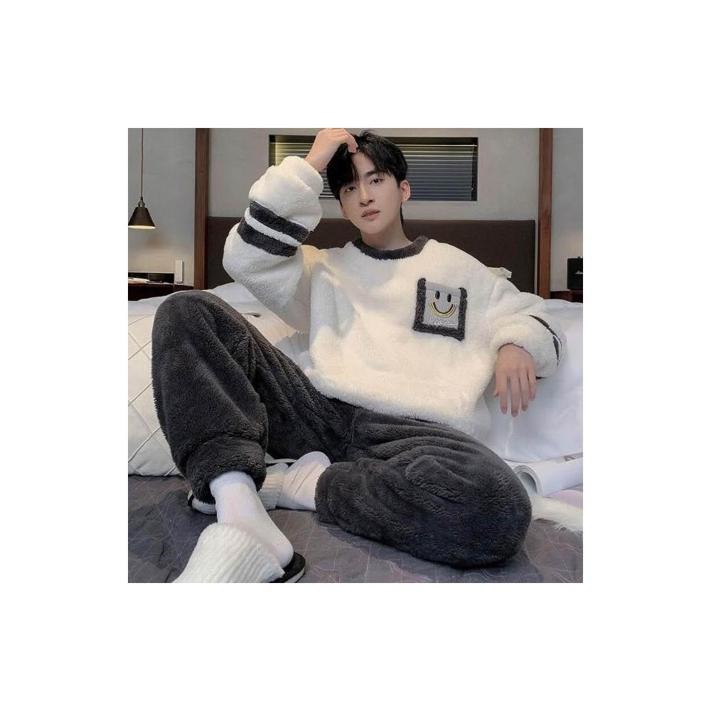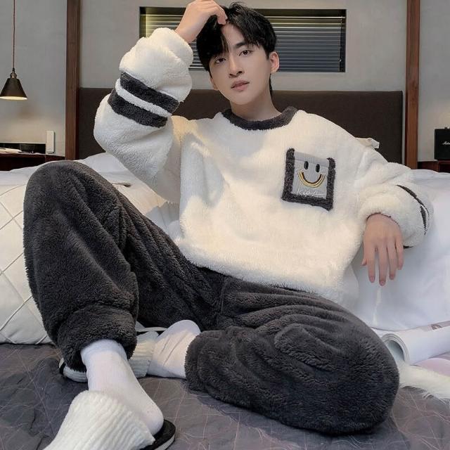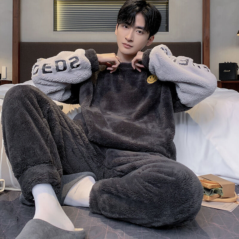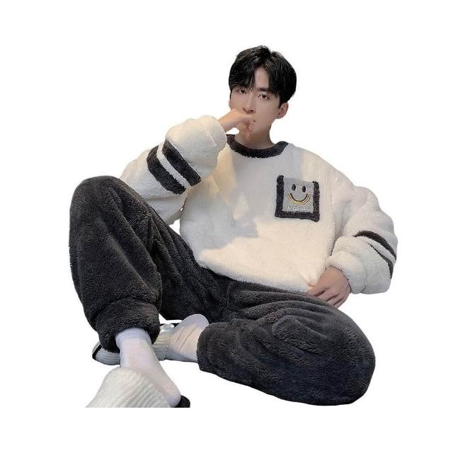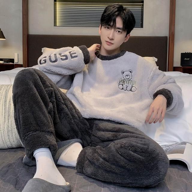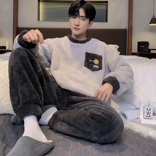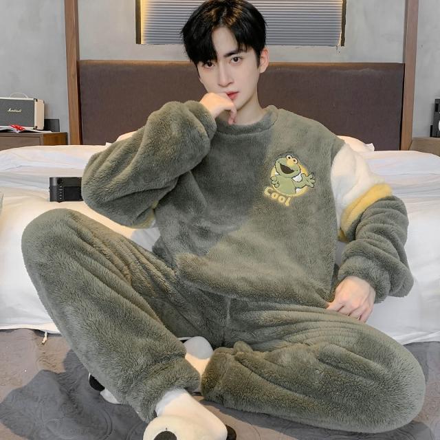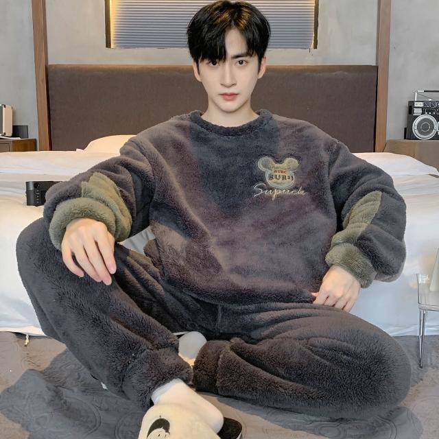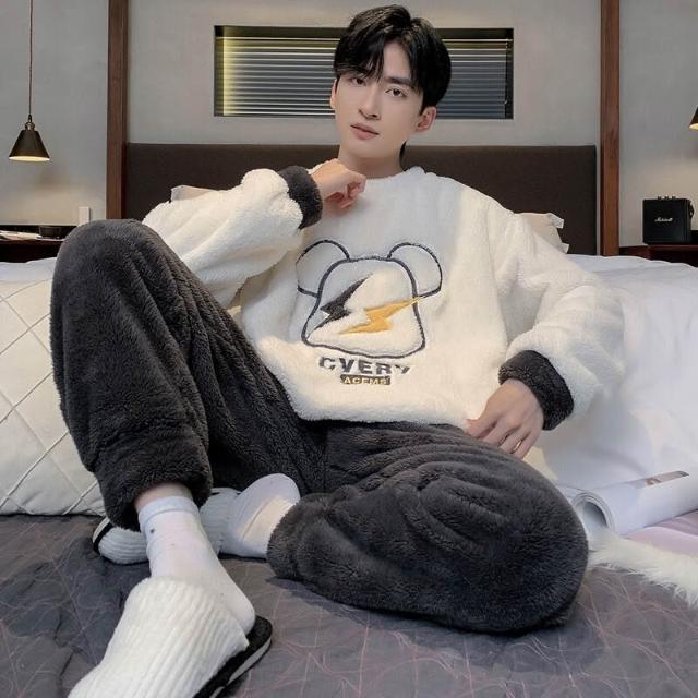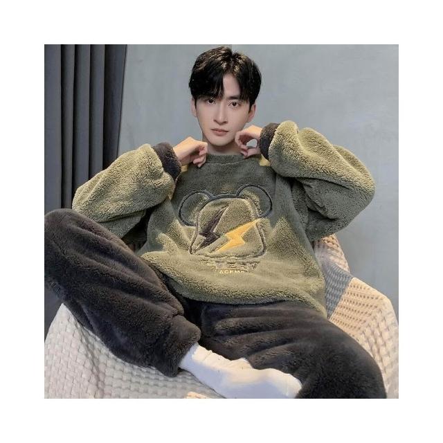 新品 含發票 秋冬珊瑚絨男睡衣套頭套裝加厚保暖男士法蘭絨家居服可外穿批發