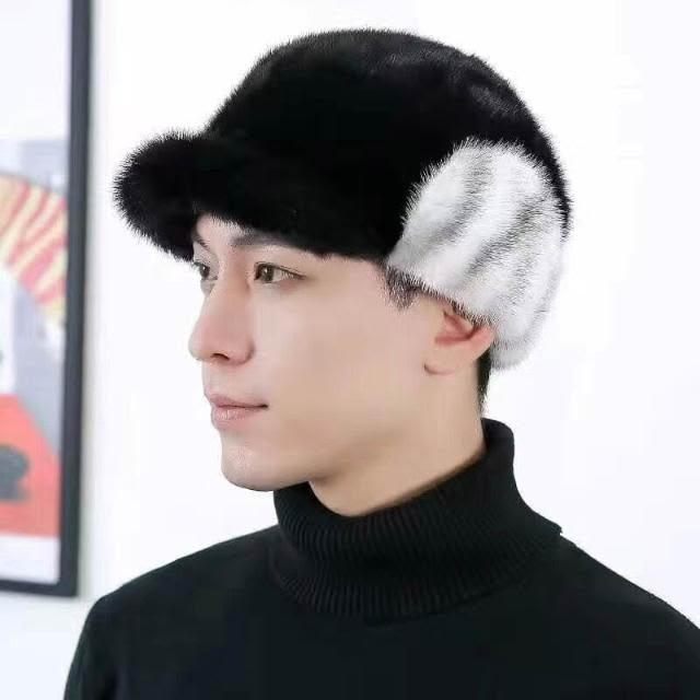 新品 含發票 貂皮帽男秋冬季新款水貂毛帽子保暖護耳帽鴨舌帽中老年人皮草帽子