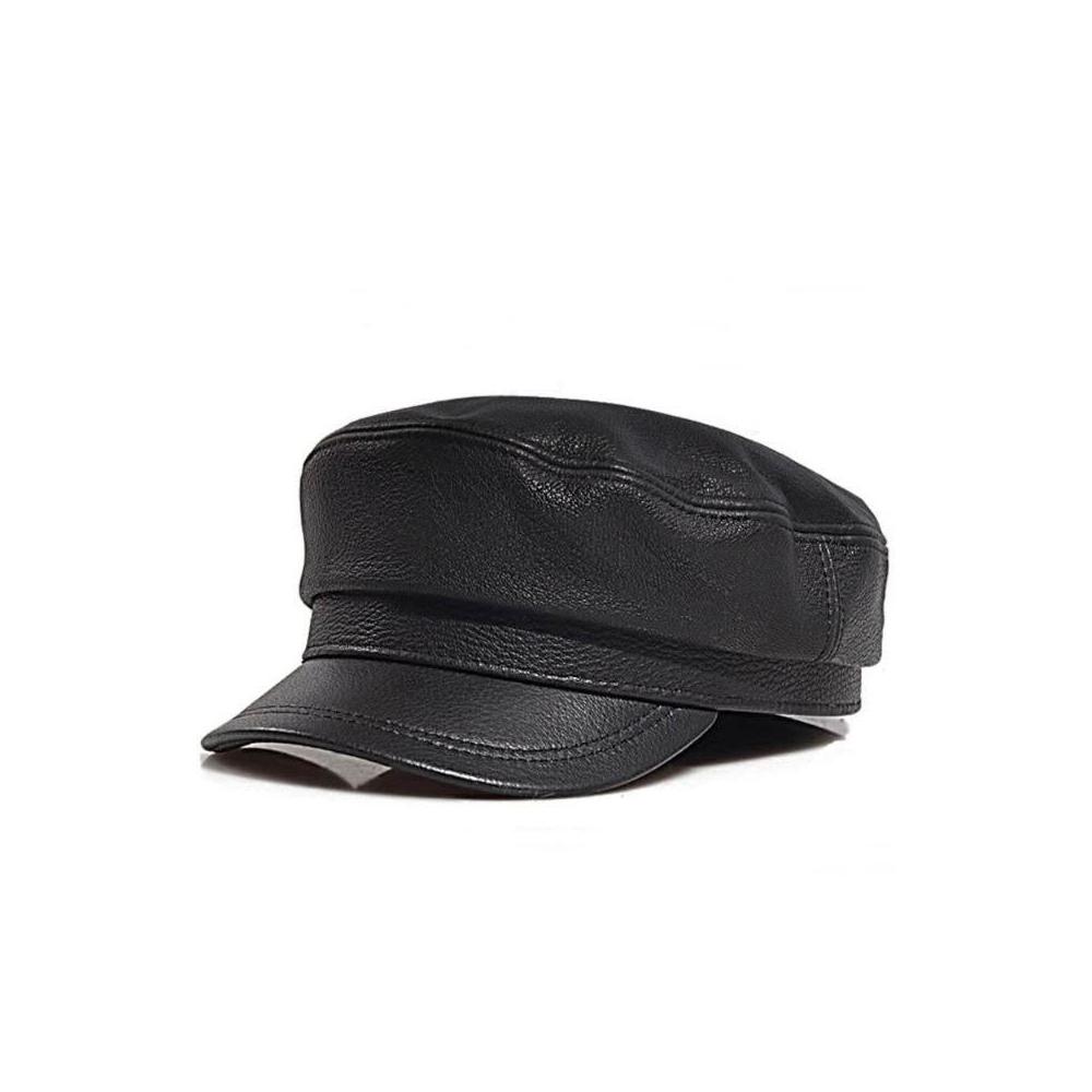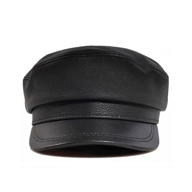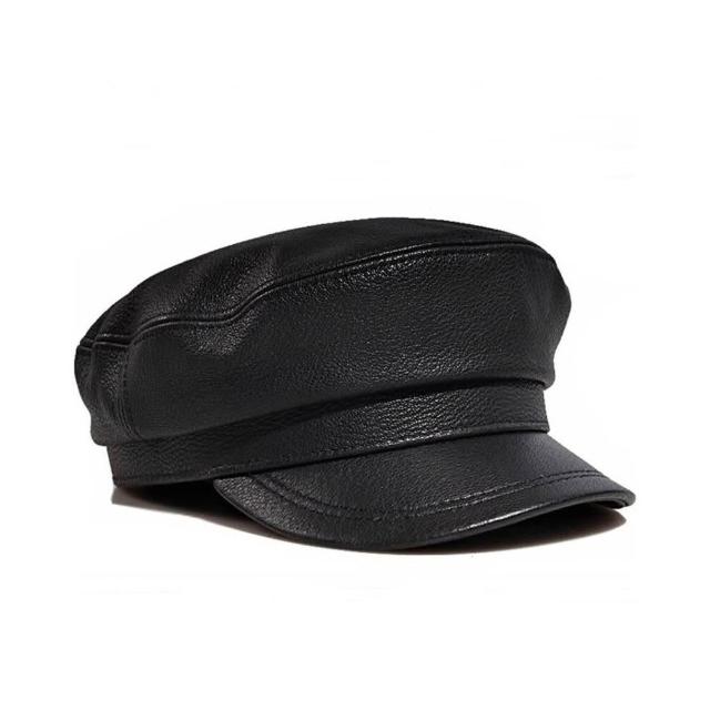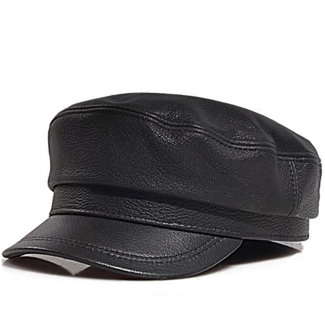 新品 含發票 老式解放帽真皮平頂帽子男士潮羊皮春秋中老年男款復古休閑帽子