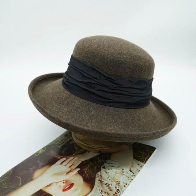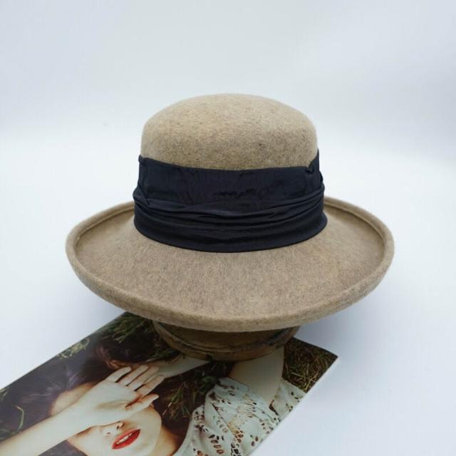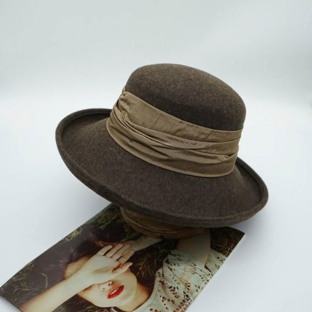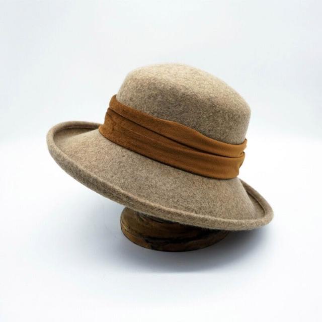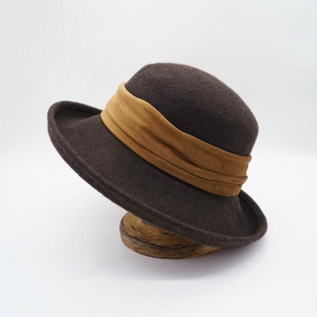 新品 含發票 復古英倫日系法式優雅咖色棕色卷邊盆帽女秋冬羊毛呢赫本百搭禮帽