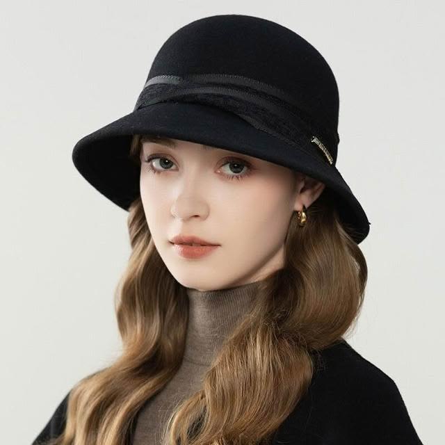 新品 含發票 新款法式復古簡約羊毛氈帽女士優雅漁夫盆帽時尚帽子冬季名媛批發