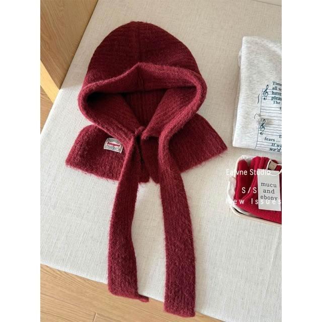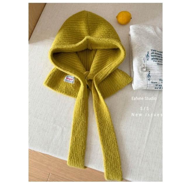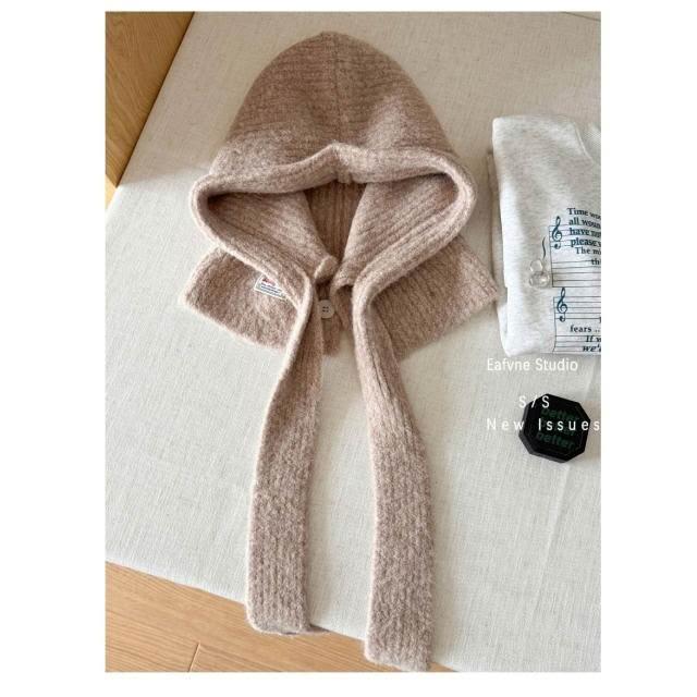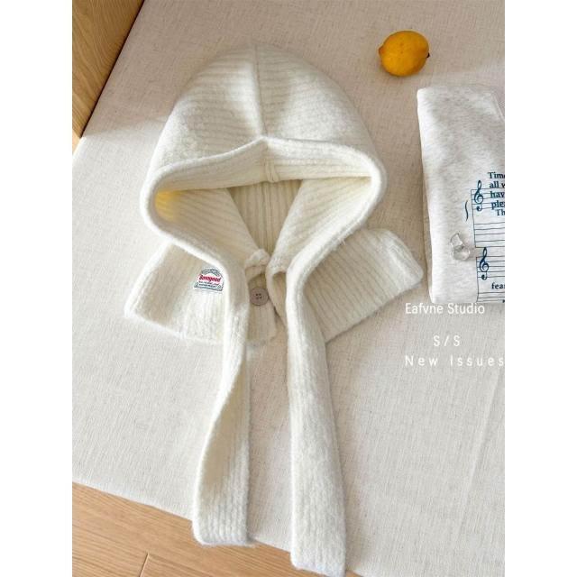 新品 含發票 韓系軟糯巴拉克拉法帽女秋冬保暖加厚針織帽子圍脖一體護耳毛線帽