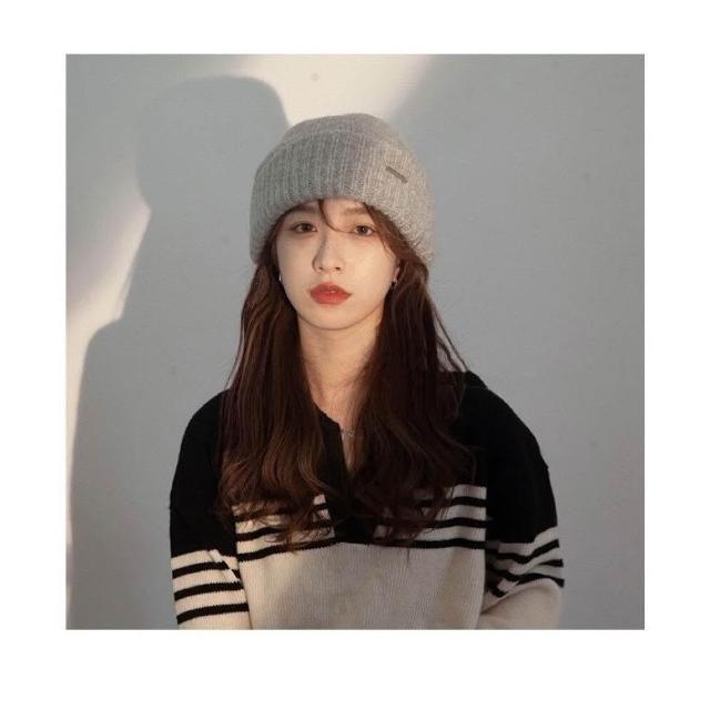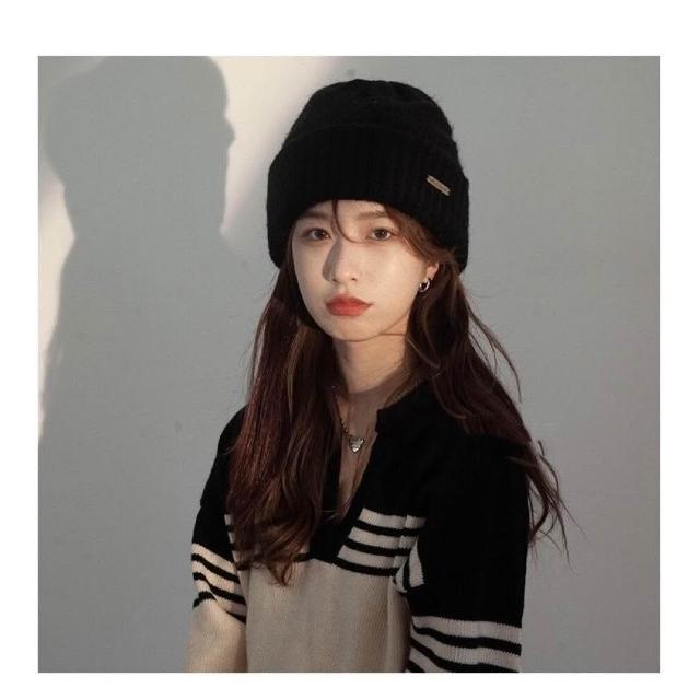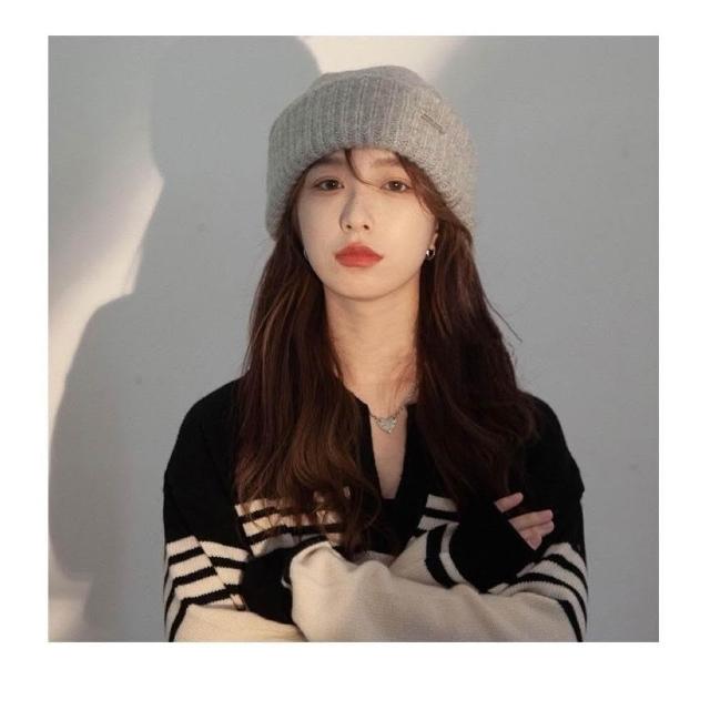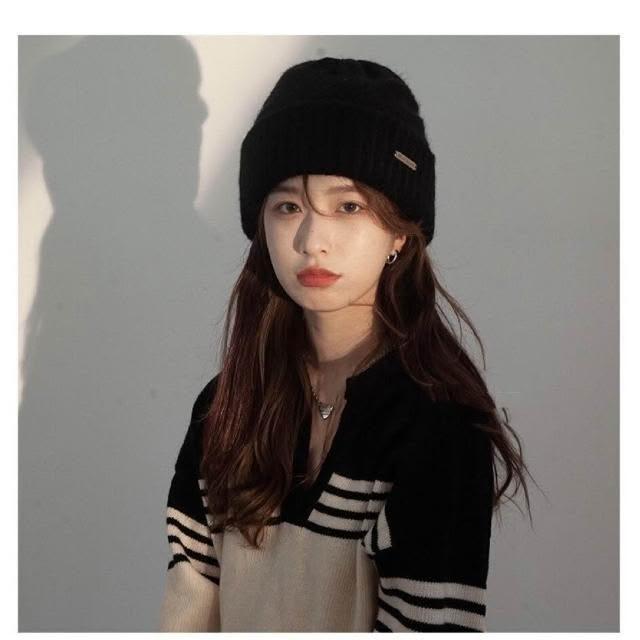 新品 含發票 大頭圍毛線帽子女春夏冷帽潮百搭黑色寬松保暖針織帽可愛潮流網紅